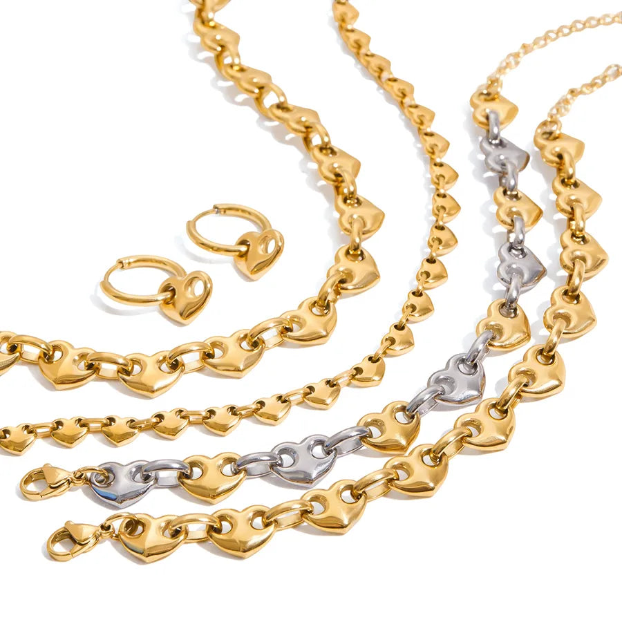 Classic Style Ladies Jewelry Set Heart Shaped Pig Nose Buckle Color Block Stainless Steel 18K Gold Bracelet Necklace Earrings