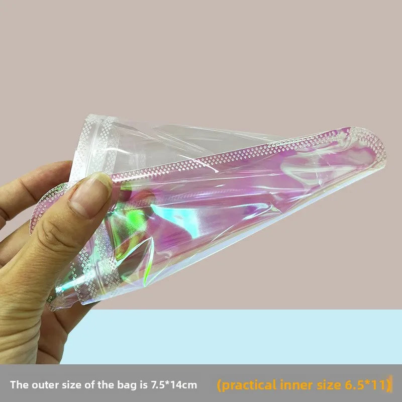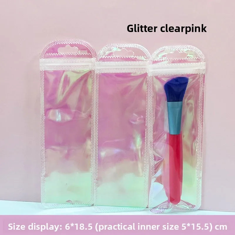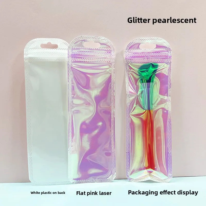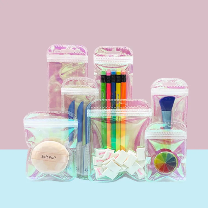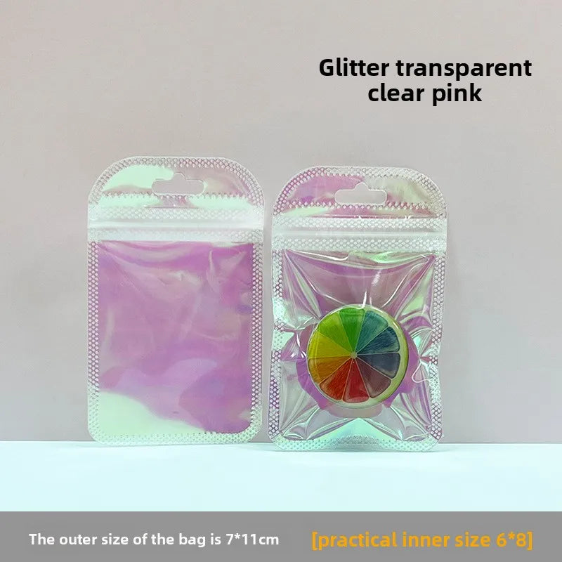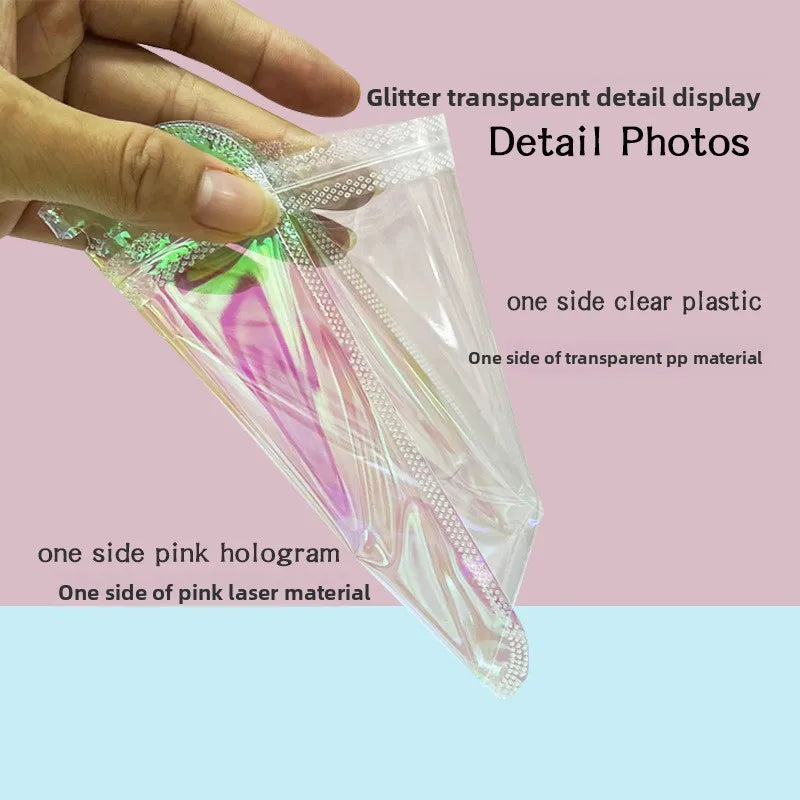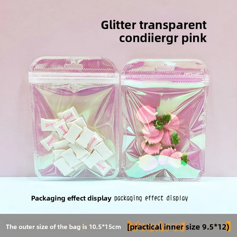 Cute Pink Packaging Bag Glittering Laser Cut-Off Lock Self-Sealing Bag With Clip Chain For Business Use Plastic Bags
