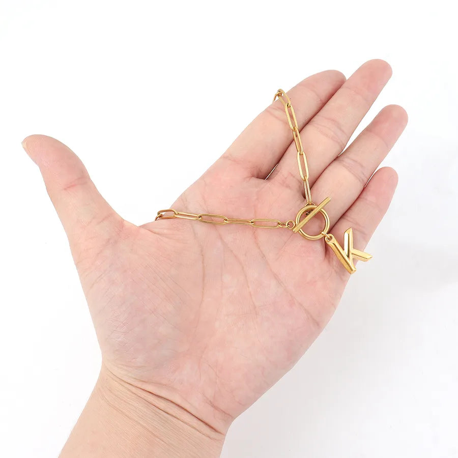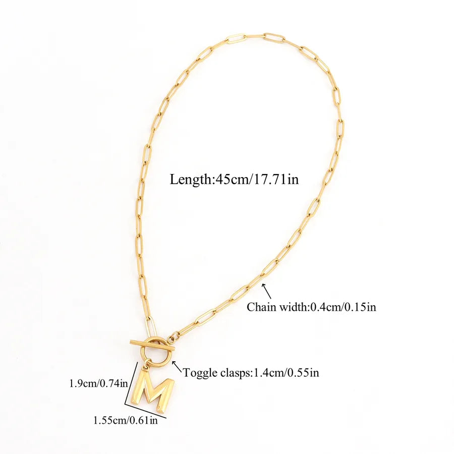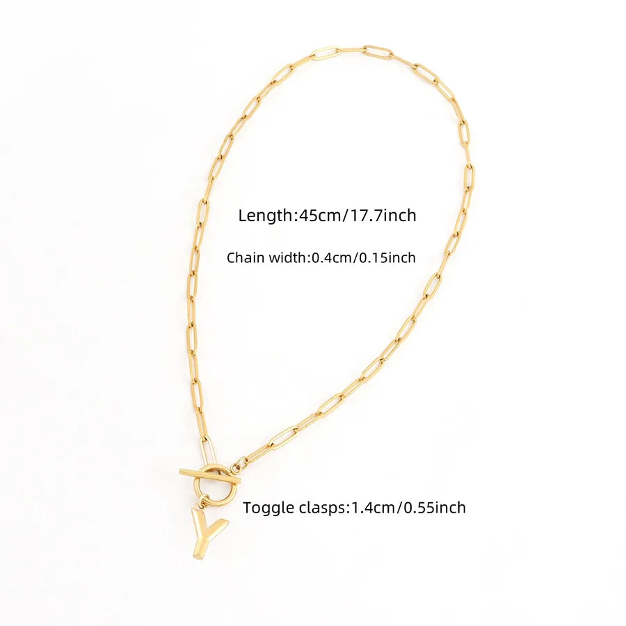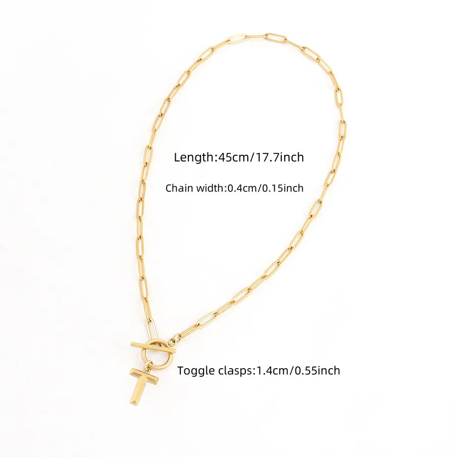 Daily Commute Versatile Initial Pendant OT Buckle Stainless Steel Pin Chain Women's Necklace Suitable For All Seasons Casual Classic Style