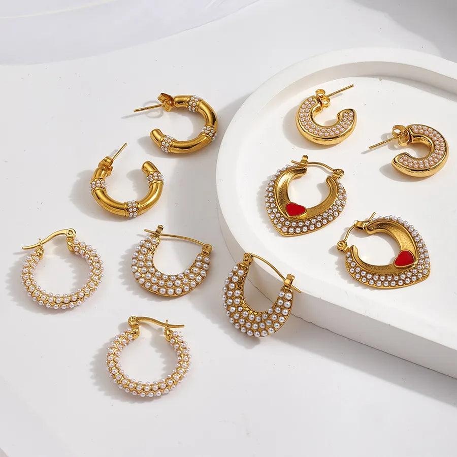 Electroplating Imitation Gold C Shape U Shape Heart Shape 304 Stainless Steel IG Style Casual Simple Style Polishing Earrings Ear Studs