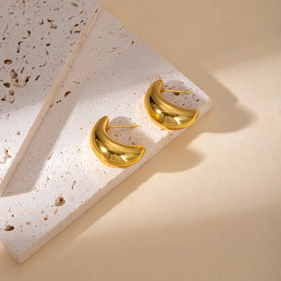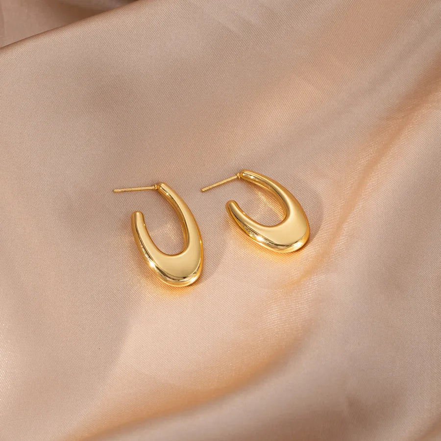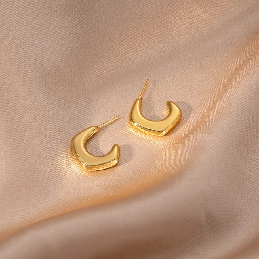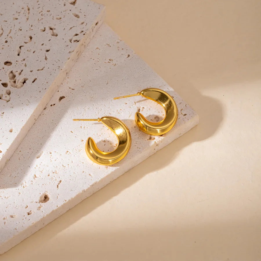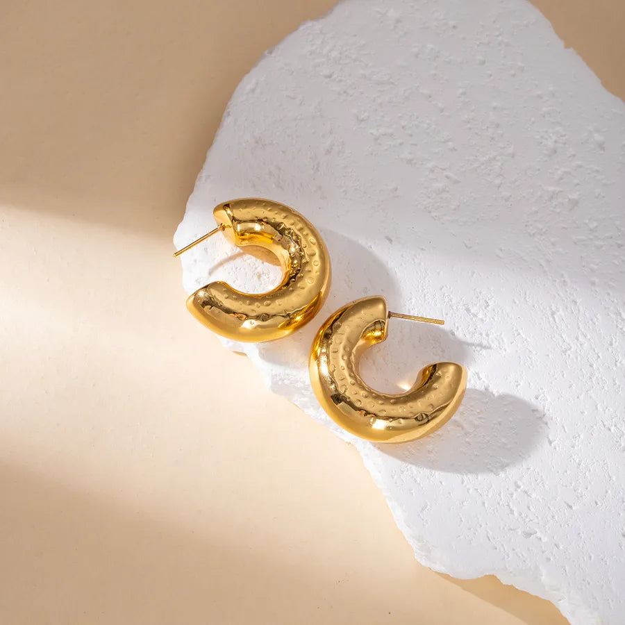 Elegant Geometric Hollow C-Shape Hoop Earrings Stainless Steel Vintage Feel Style Women's Fashion Jewelry