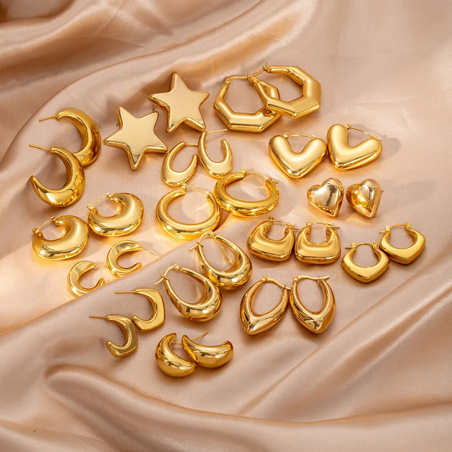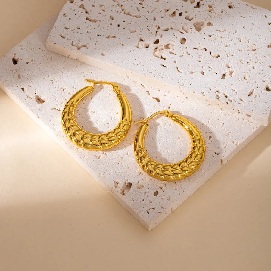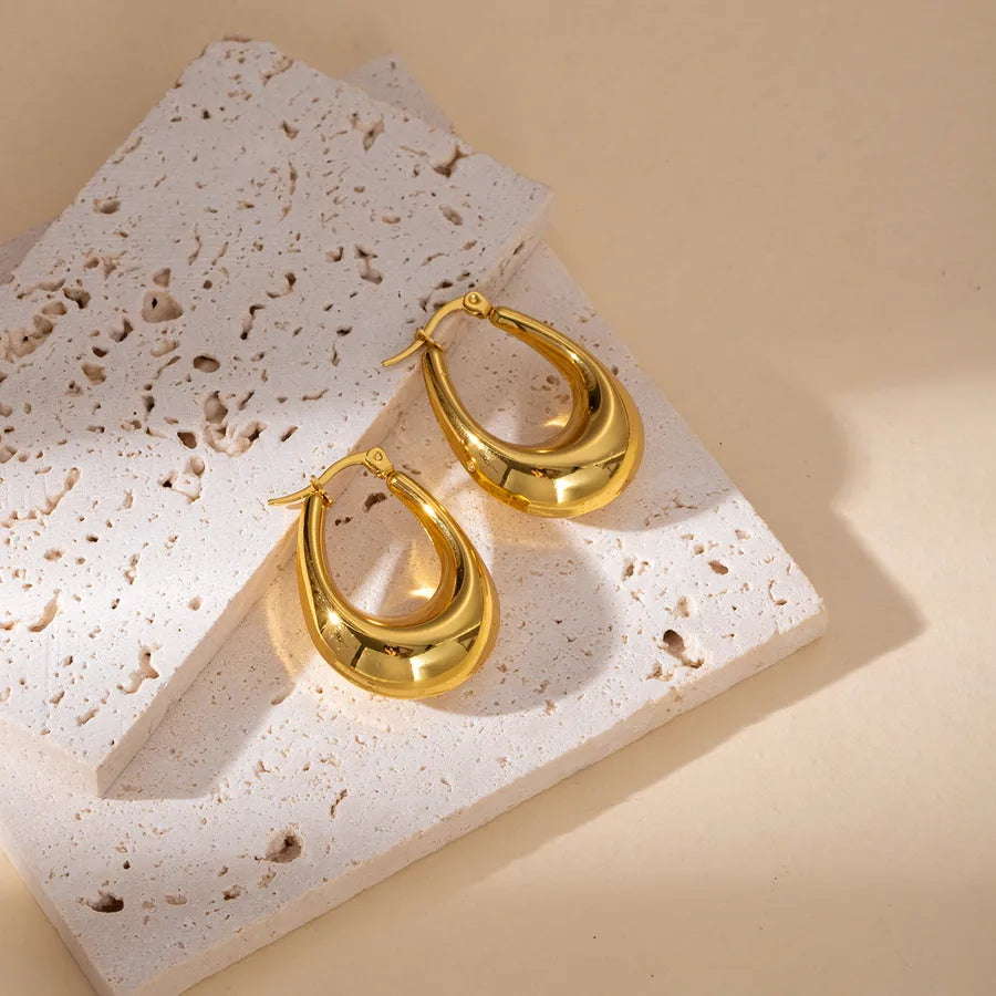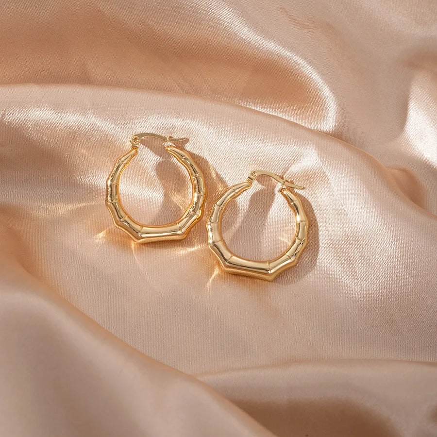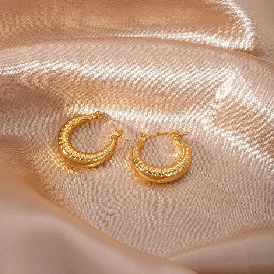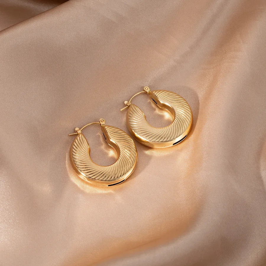 Elegant Geometric Hollow C-Shape Hoop Earrings Stainless Steel Vintage Feel Style Women's Fashion Jewelry