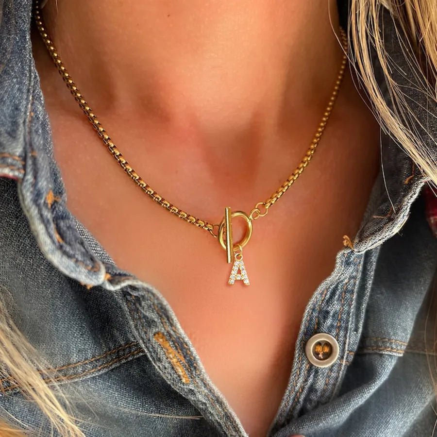 Elegant Minimalist Classic Style Initial Pendant OT Buckle Micro-Set Zirconia Stainless Steel Chain Women's Necklace