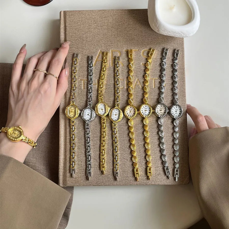 Elegant Oval Mother-of-Pearl Quartz Watch Women's Fashion Style Bracelet Watch Luxury Minimalist Round Dial Glass Mirror