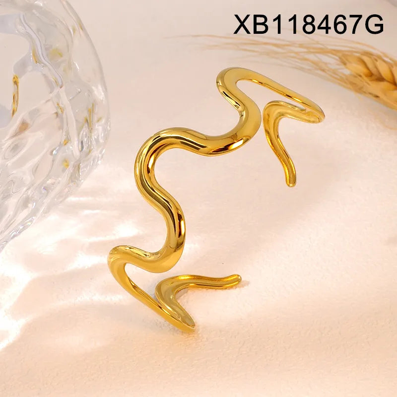 Elegant Simple Style Waves Solid Color 304 Stainless Steel 18K Gold Plated Cuff Bracelets In Bulk