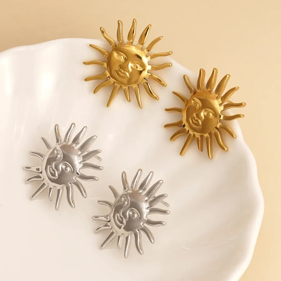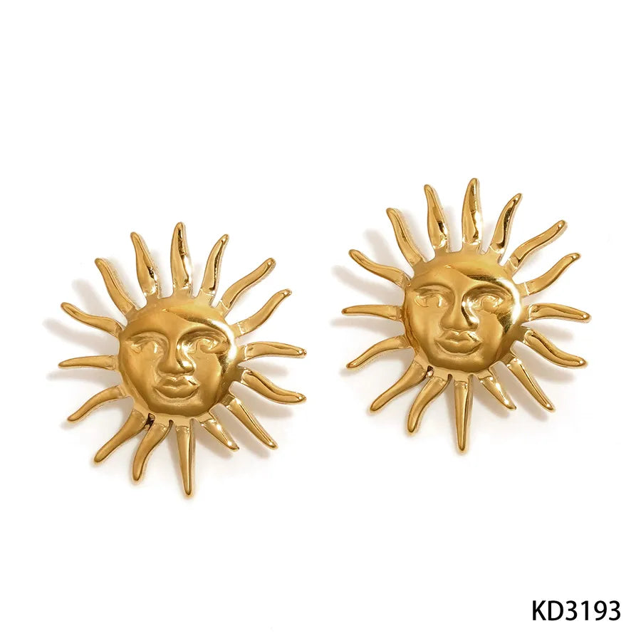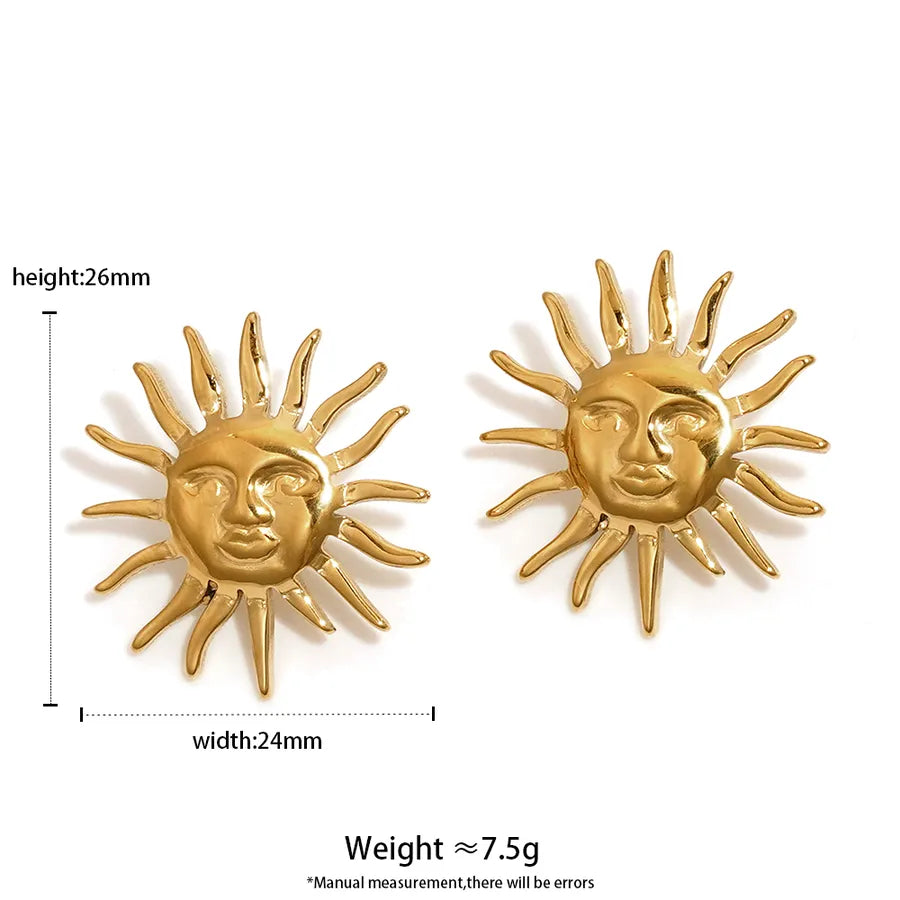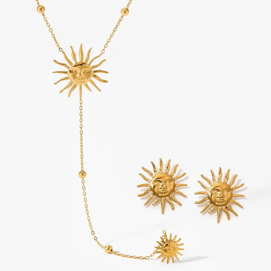 Elegant Sun Face Stainless Steel Necklace And Earring Set High Quality Vintage Personality Luxury Plated Jewelry Accessories