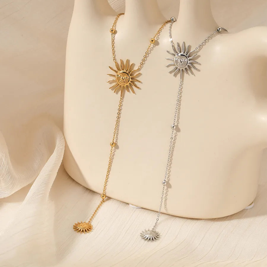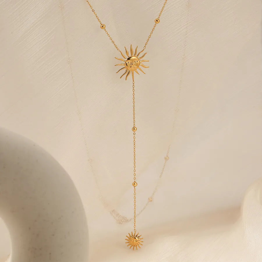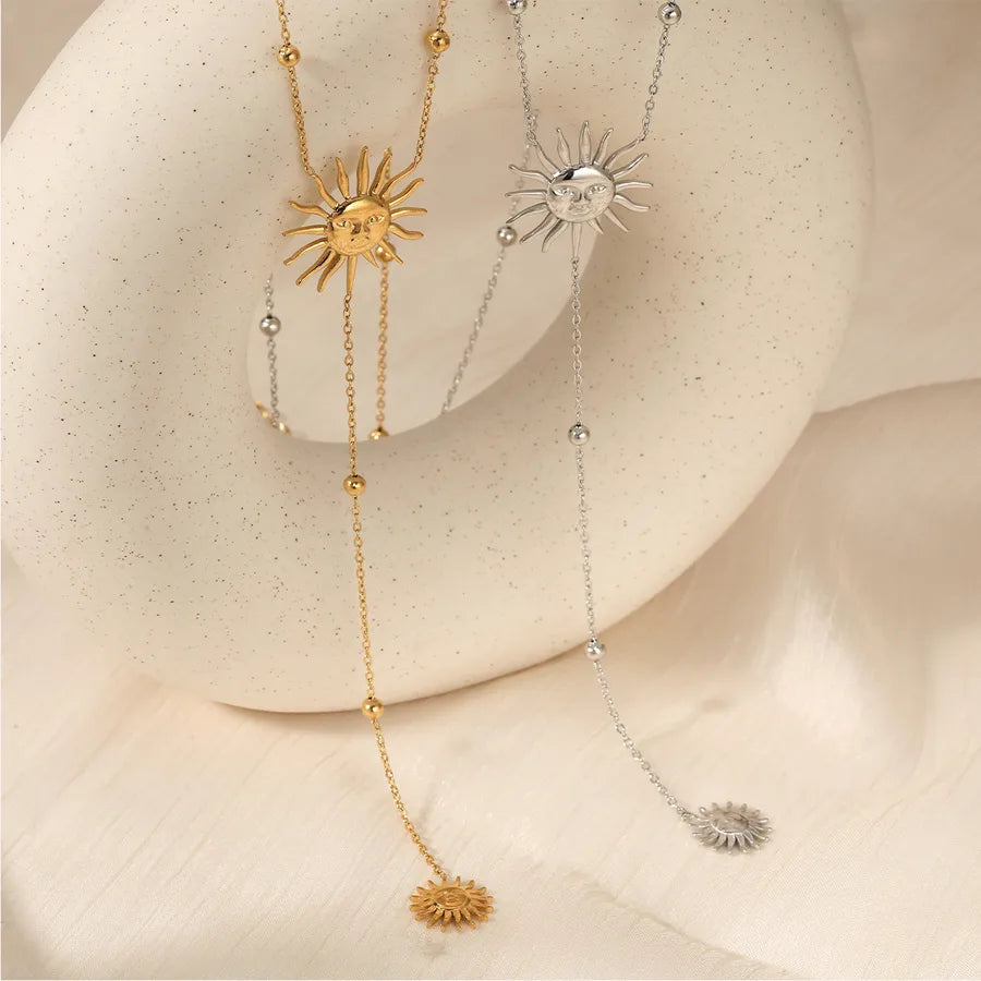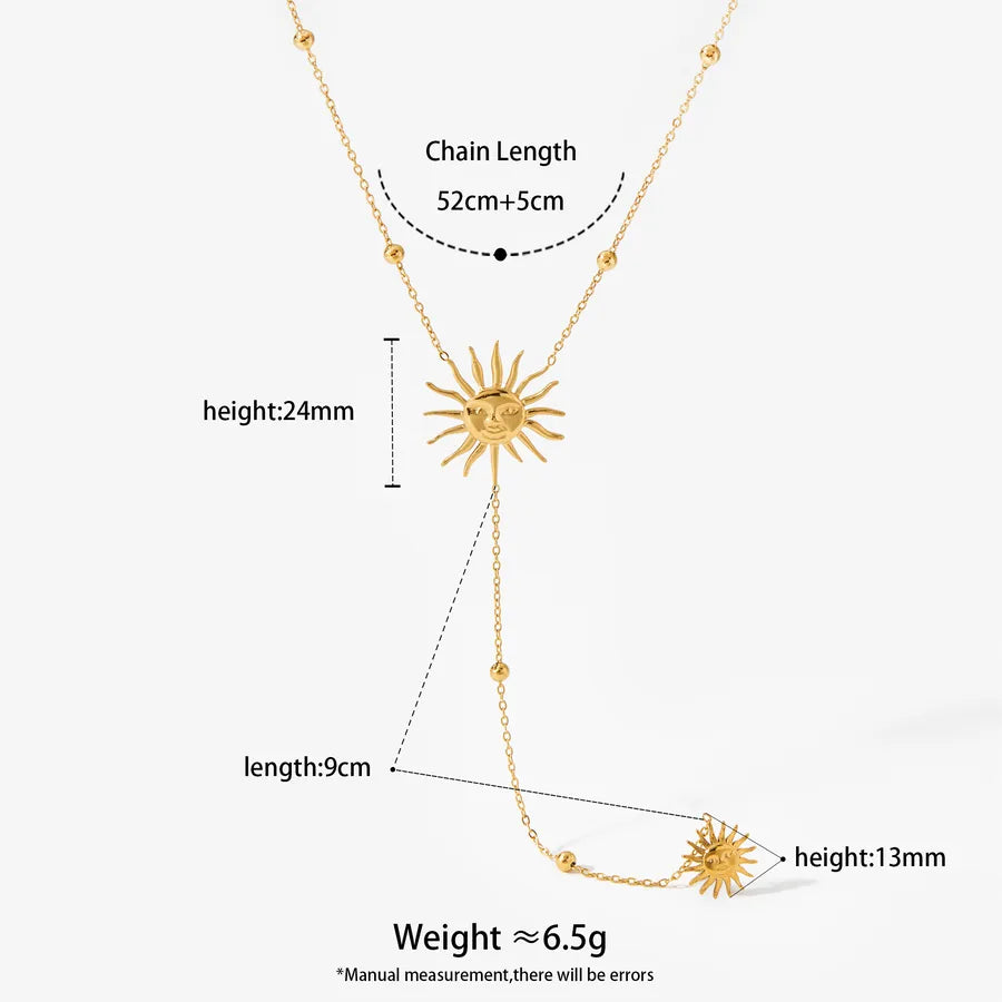 Elegant Sun Face Stainless Steel Necklace And Earring Set High Quality Vintage Personality Luxury Plated Jewelry Accessories
