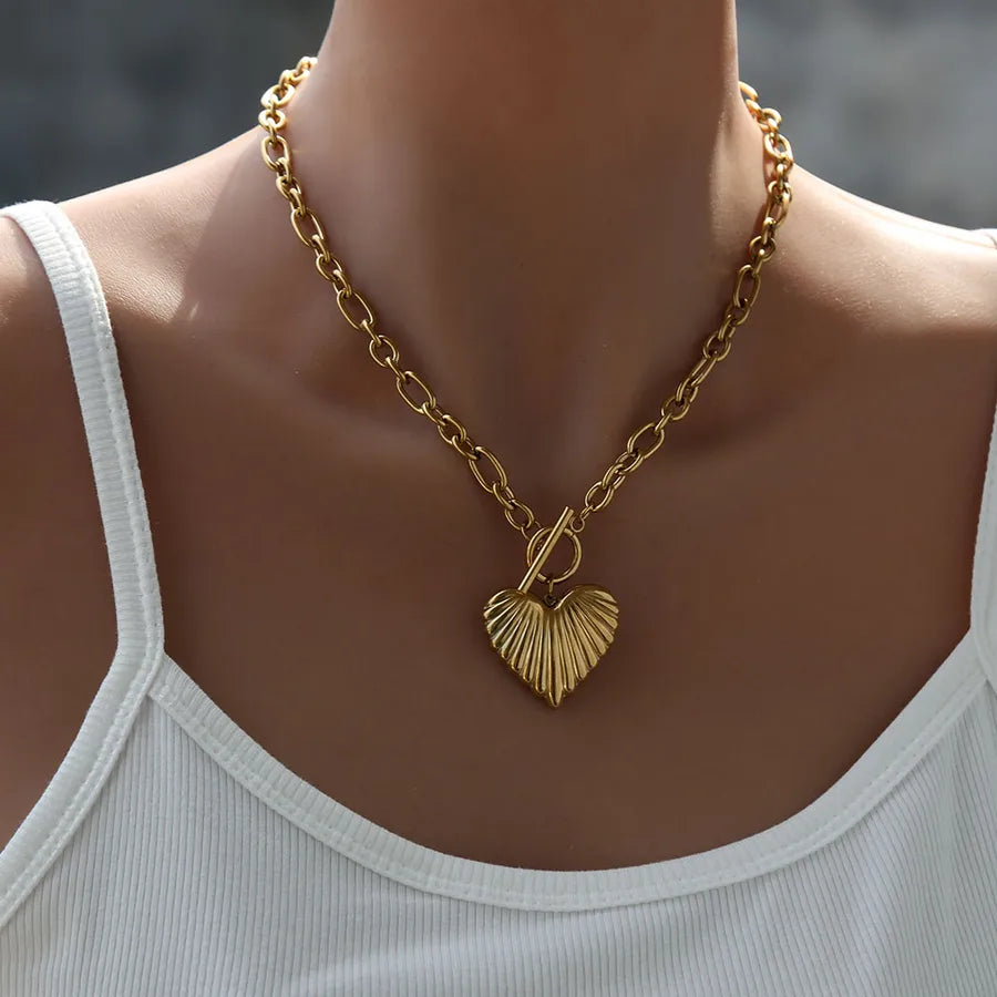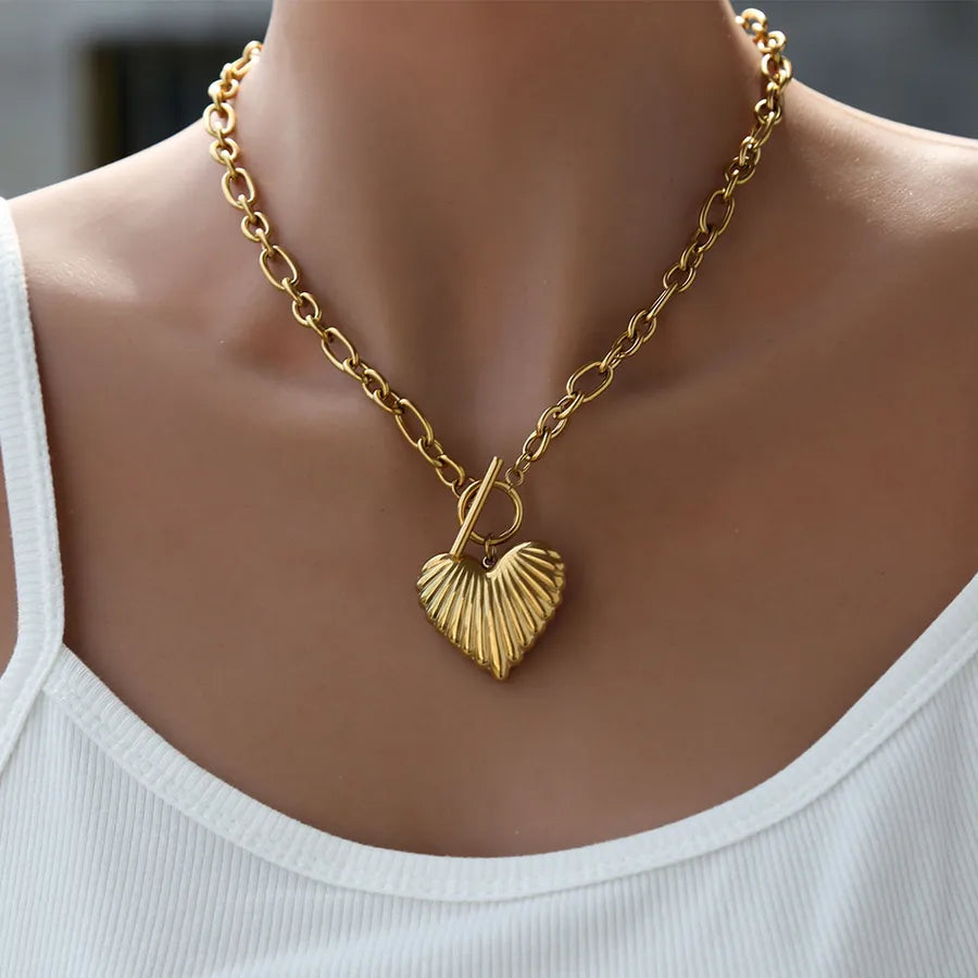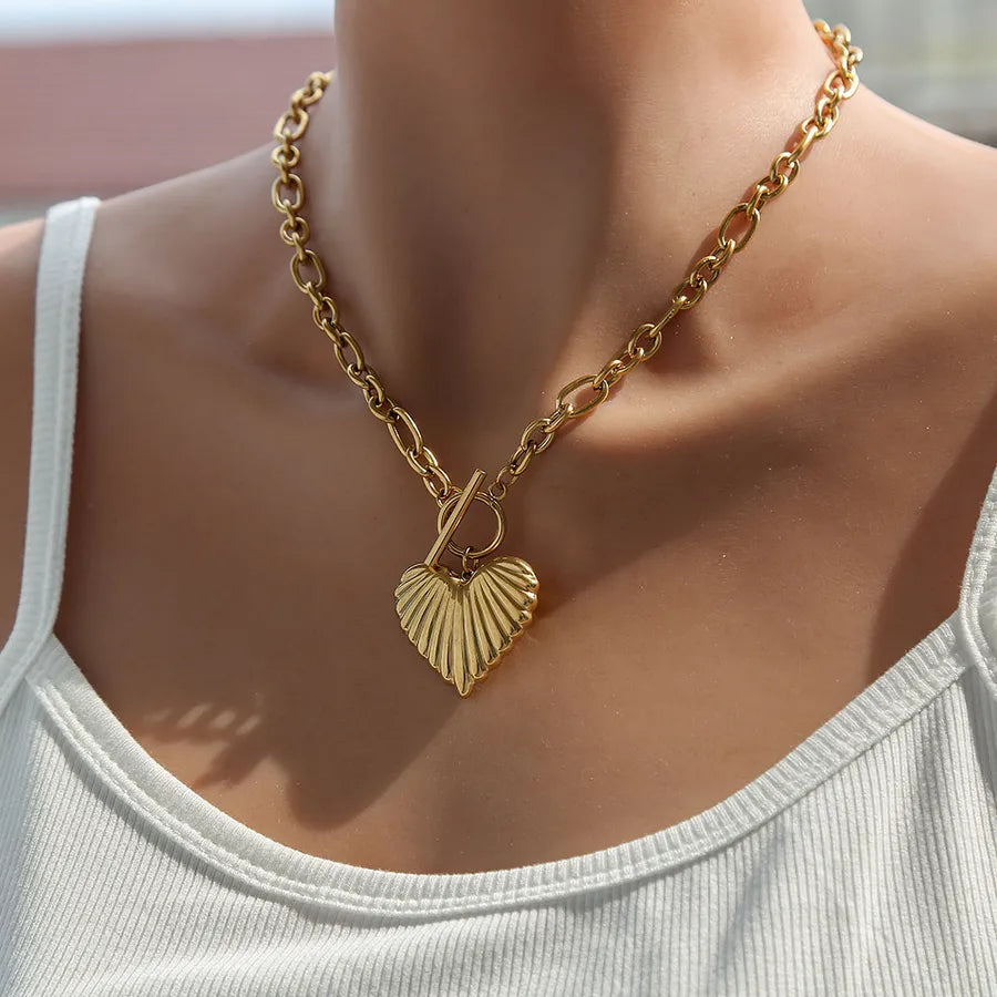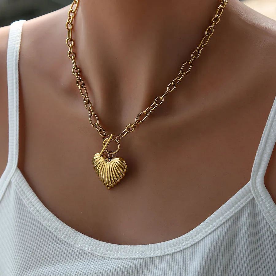Exaggerated Heart Shaped Necklace Women's Fashion Accessory Style INS Design Gold Plated Stainless Steel