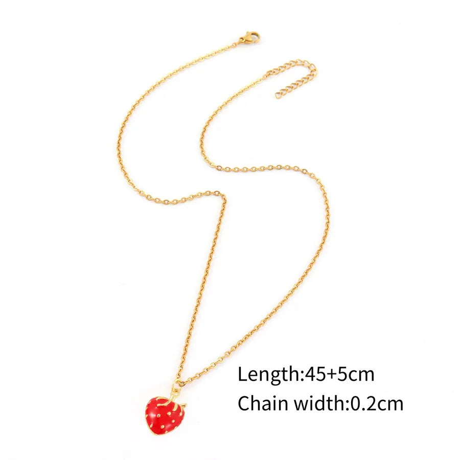 Fashionable Cute Sweet Strawberry Pendant Necklace Gold Stainless Steel Chain For Women Casual Classic Style Jewelry Accessory