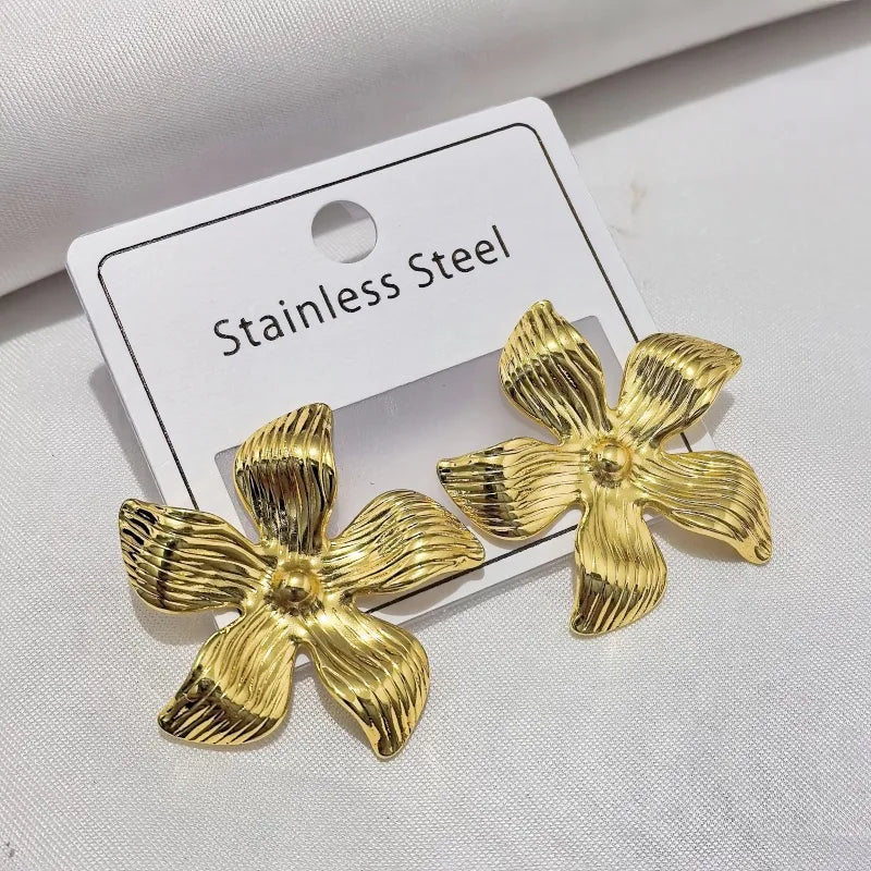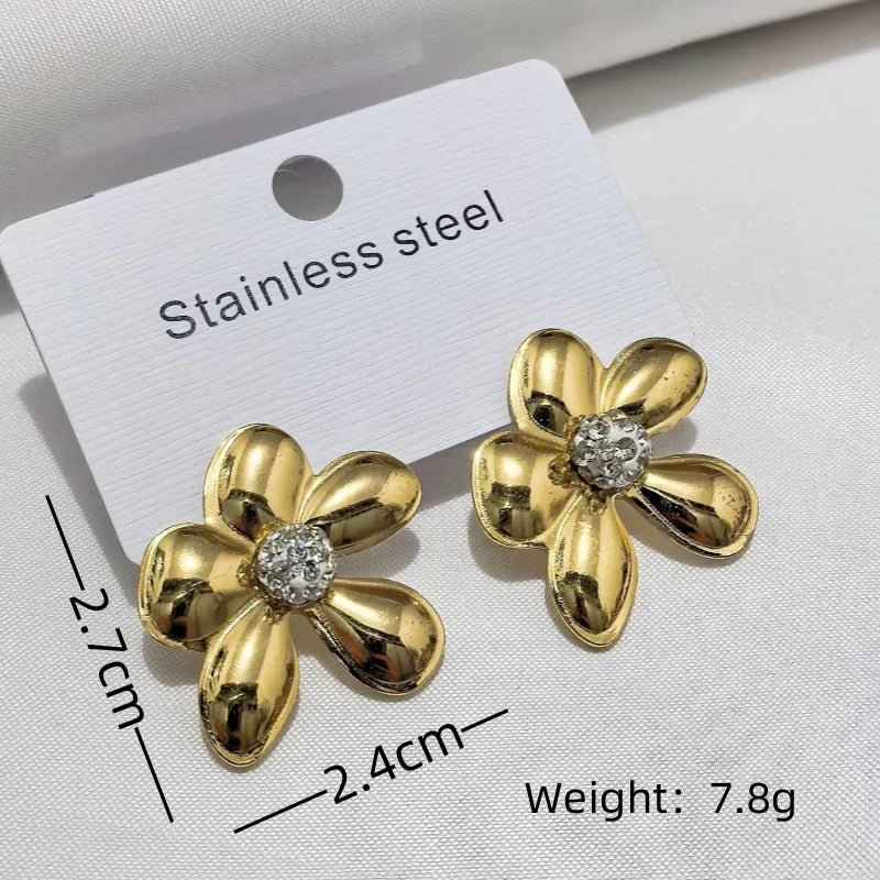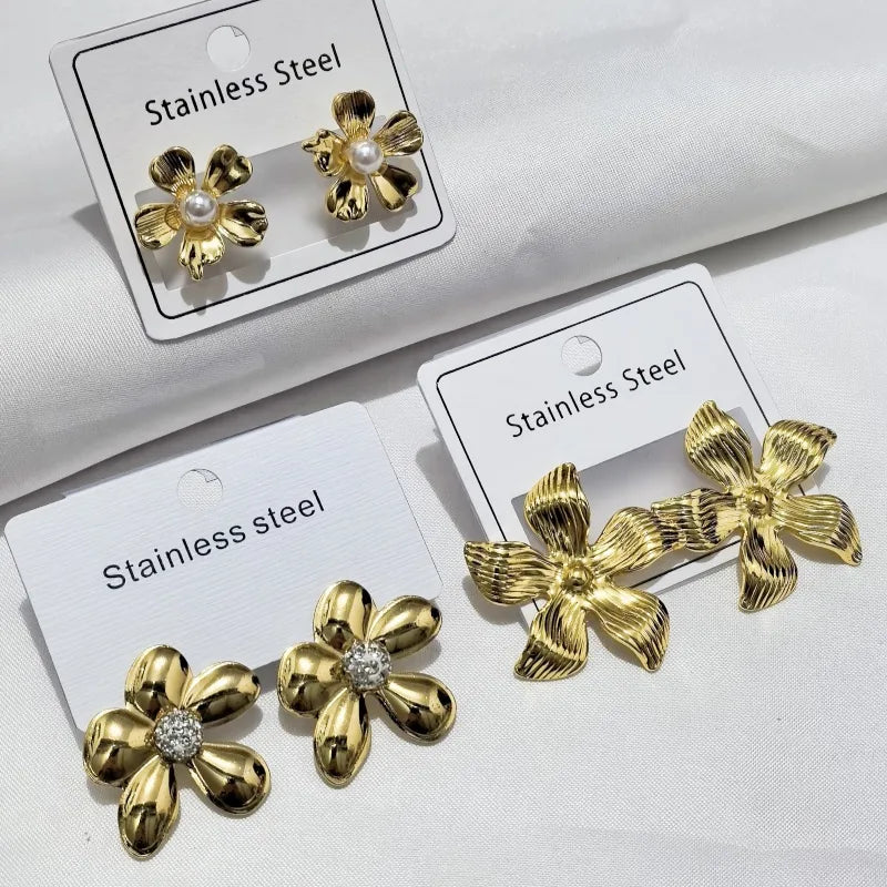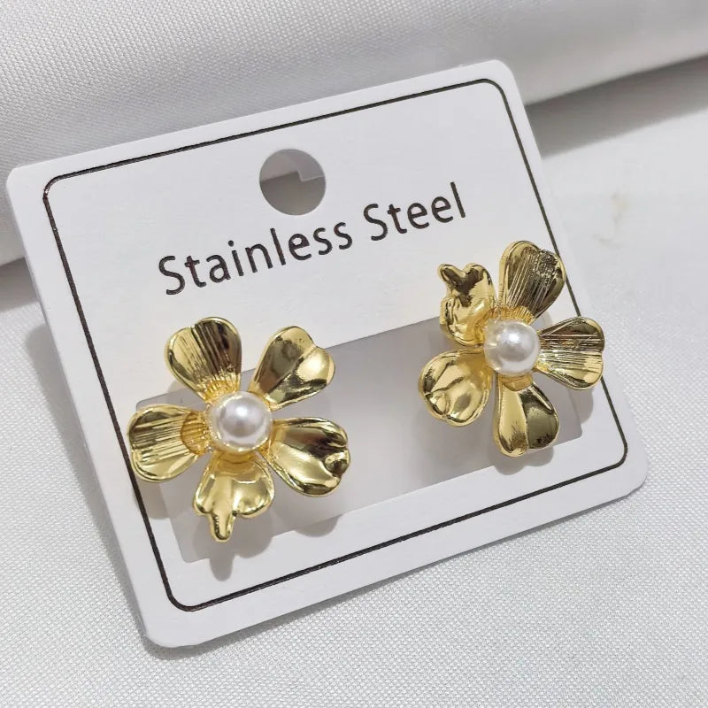 French Style Stainless Steel Flower Pearl Earrings Elegant Vintage Romantic Gold Plated Butterfly Cap Ear Studs For Women
