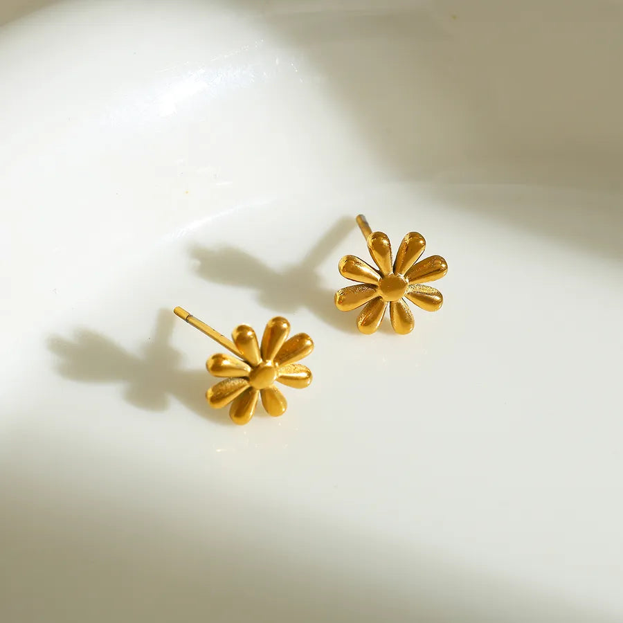 Geometric Floral Stainless Steel 18K Gold Plated Small Earrings Fashionable Cute Polished Finish For Indoor Birthday Party Date Selfie Festival