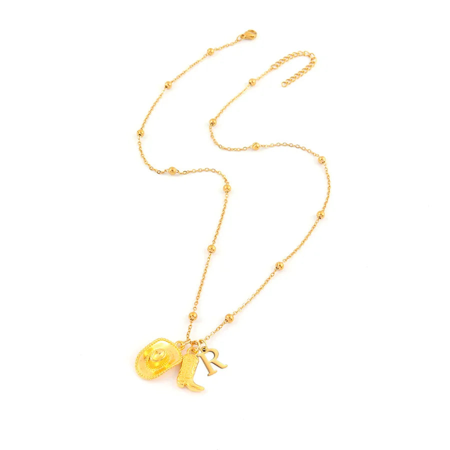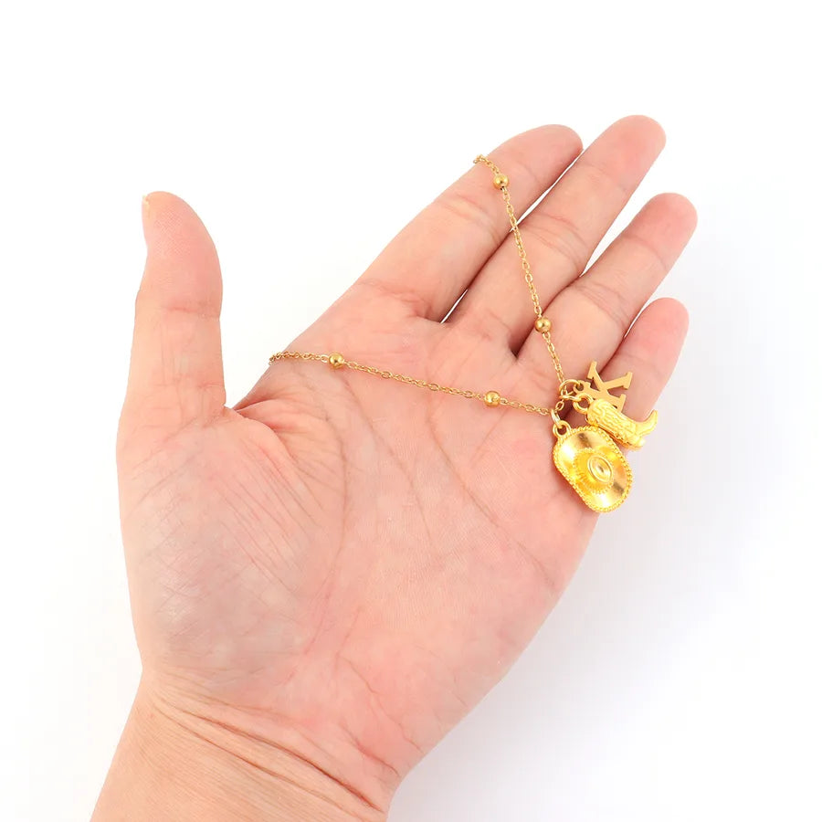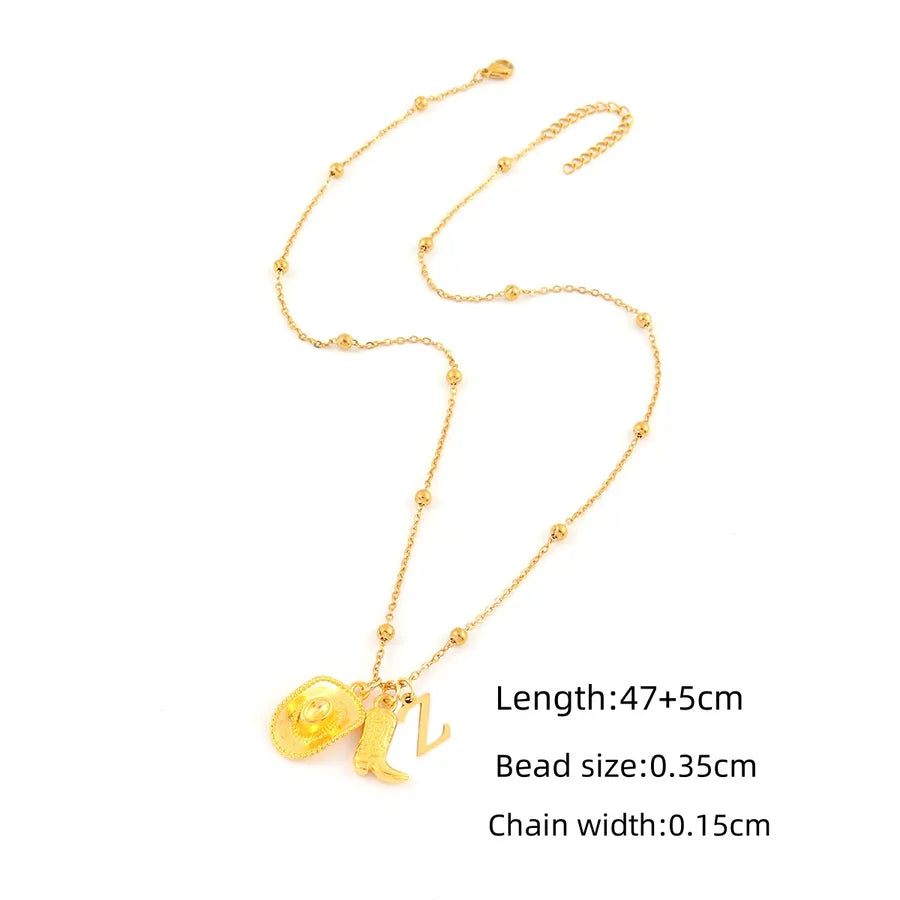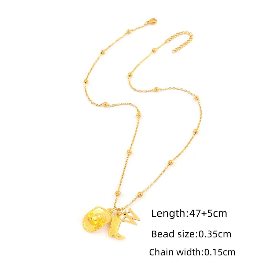 Gold Vintage Elegant Initial Denim Hat Boots Stainless Steel Clip Ball Chain Women's Necklace Casual Daily Party Date