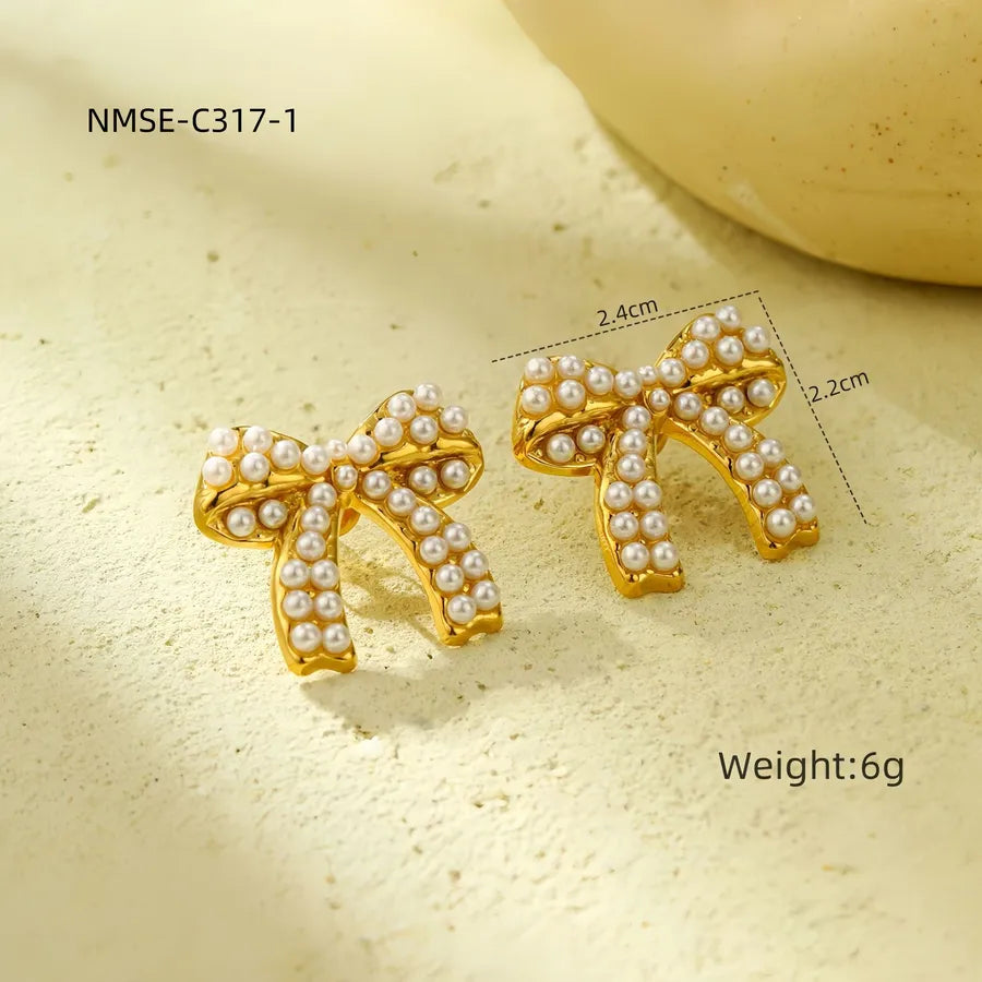 Lady Bow Knot Titanium Steel Plating Pearl Women's Jewelry Set