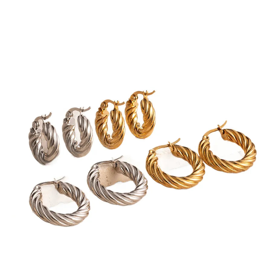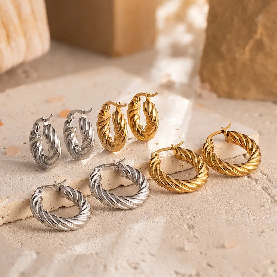 Luxurious Stainless Steel Twisted Huggie Earrings For Women Gold Plated Round Fashionable Versatile Ear Jewelry
