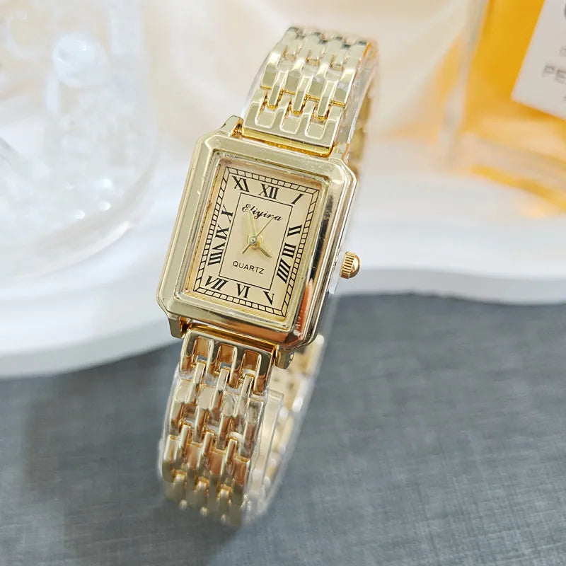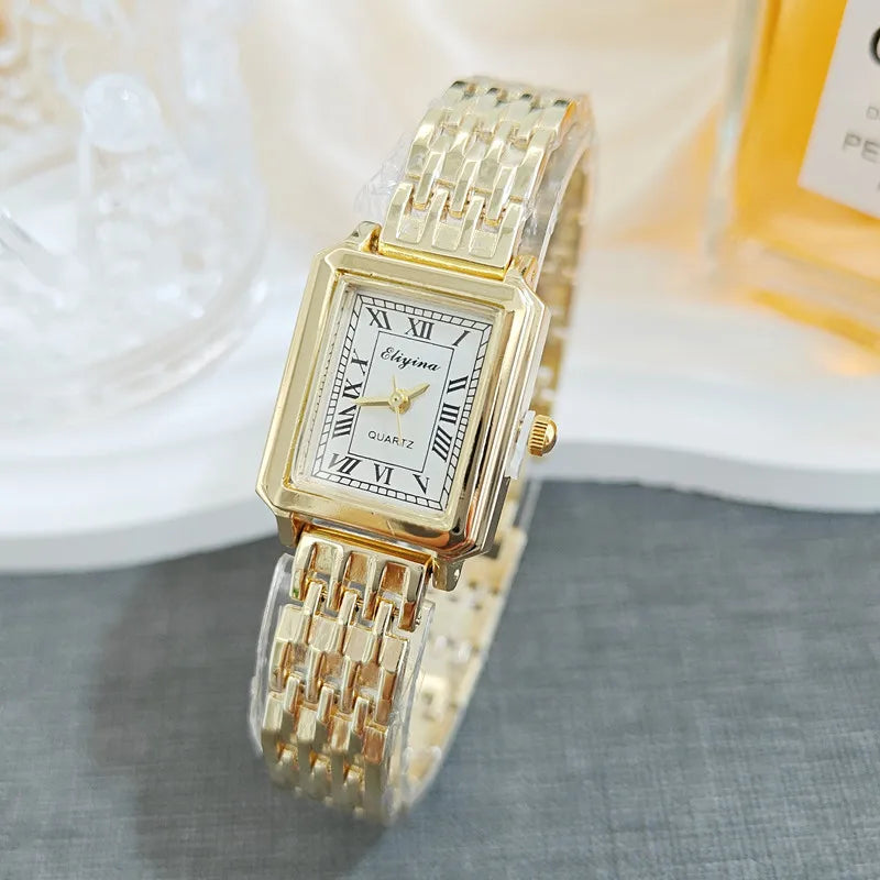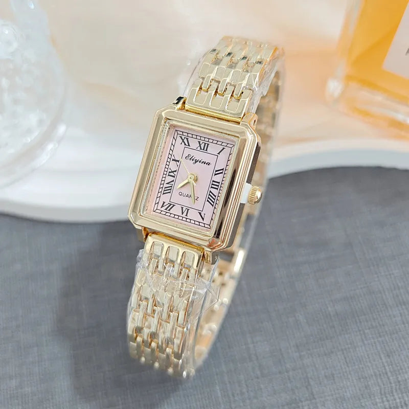 New Fashionable Square Roman Numerals Ladies Quartz Watch High Aesthetic Value Alloy Strap Pointer Display Single Fold Clasp