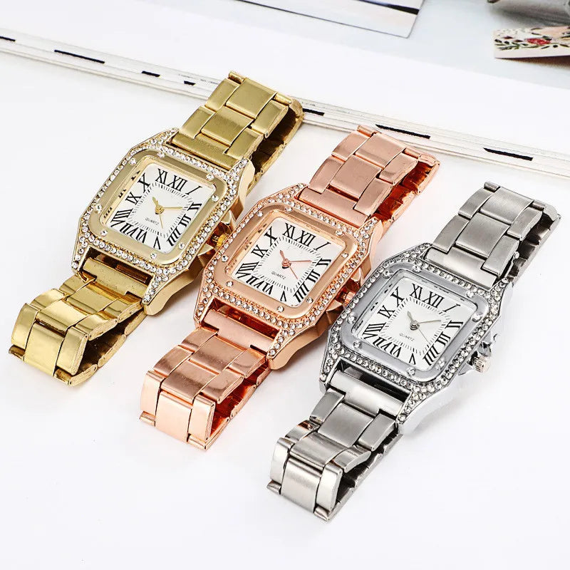 New Roman scale personality square dial diamond steel band ladies watch manufacturers wholesale
