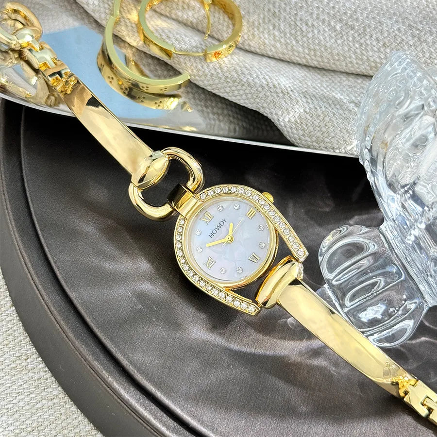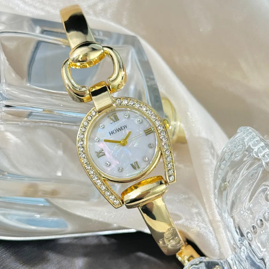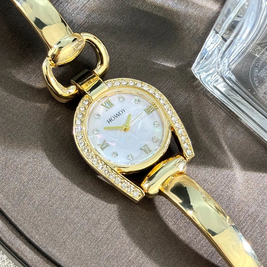 New Women's Quartz Watch Mother-of-Pearl Face Button Design Casual High-End Feeling Diamond-Encrusted Bracelet Alloy Strap
