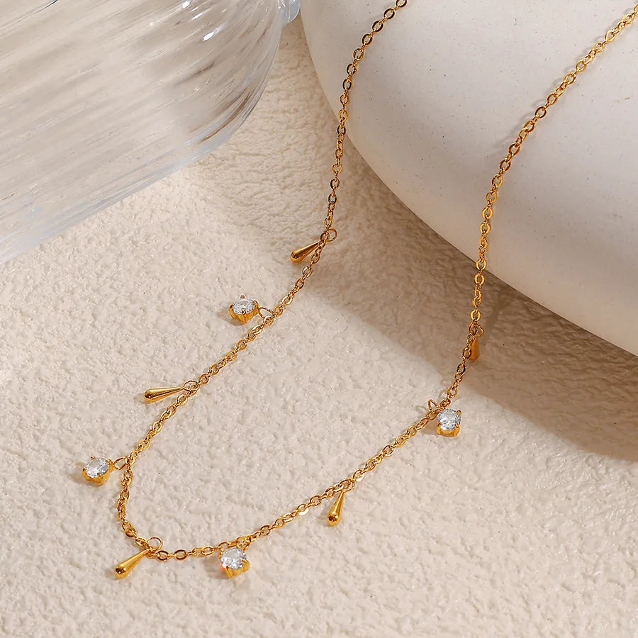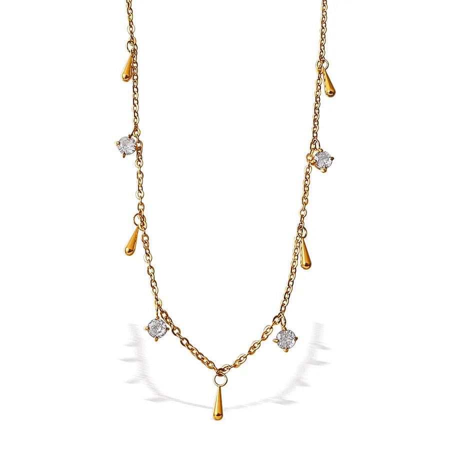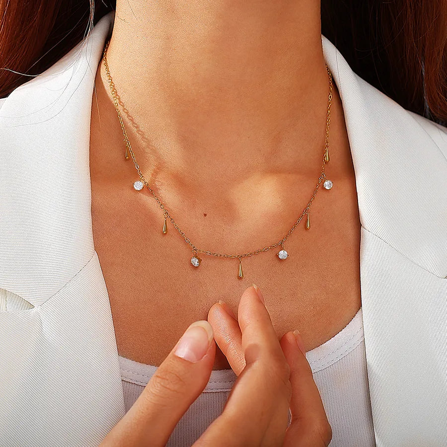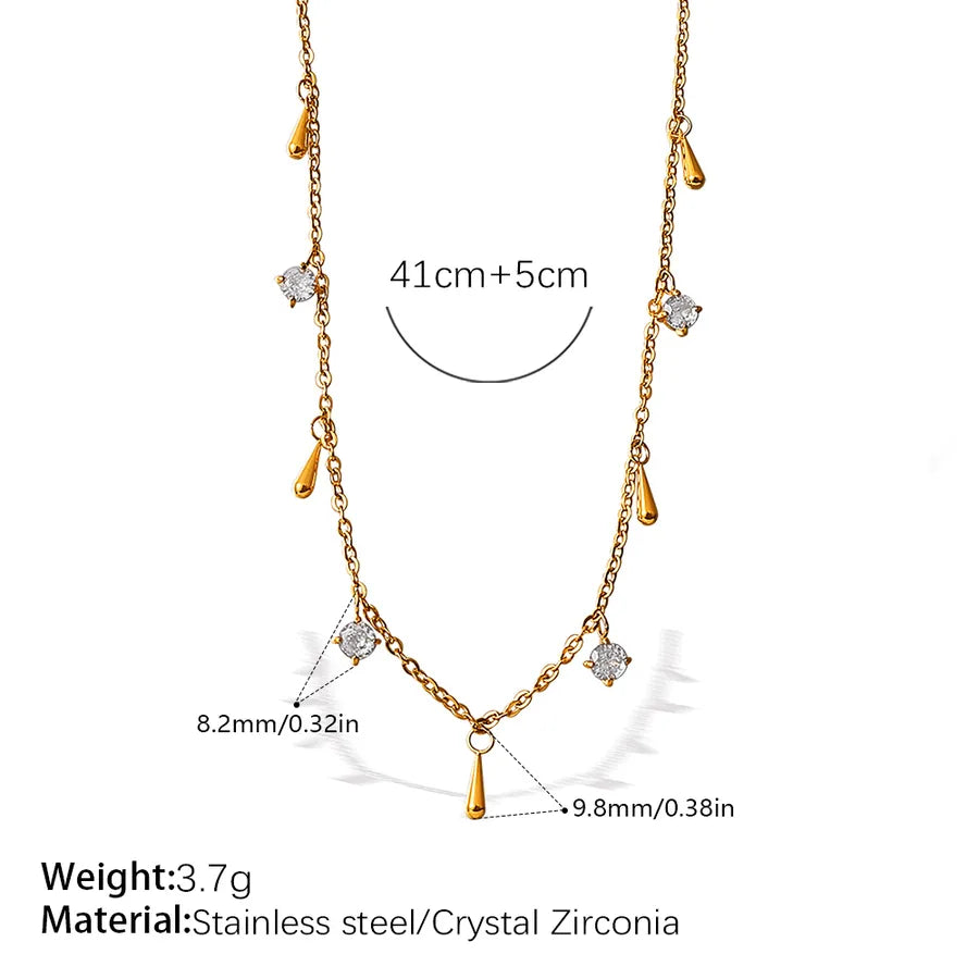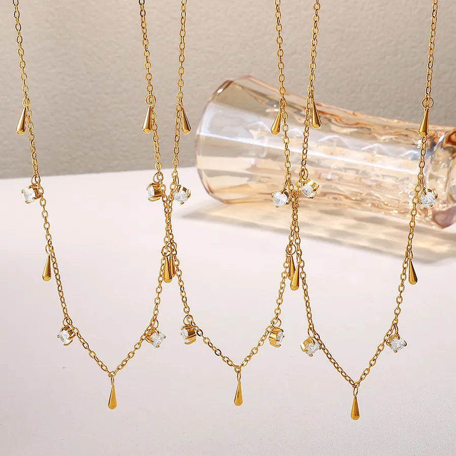 Retro Ins Style Gold Plated Drop Earrings Necklace Layering High-End Elegant Versatile Luxury Tassel Waterdrop Design Necklace