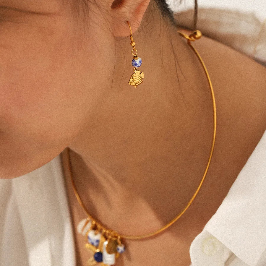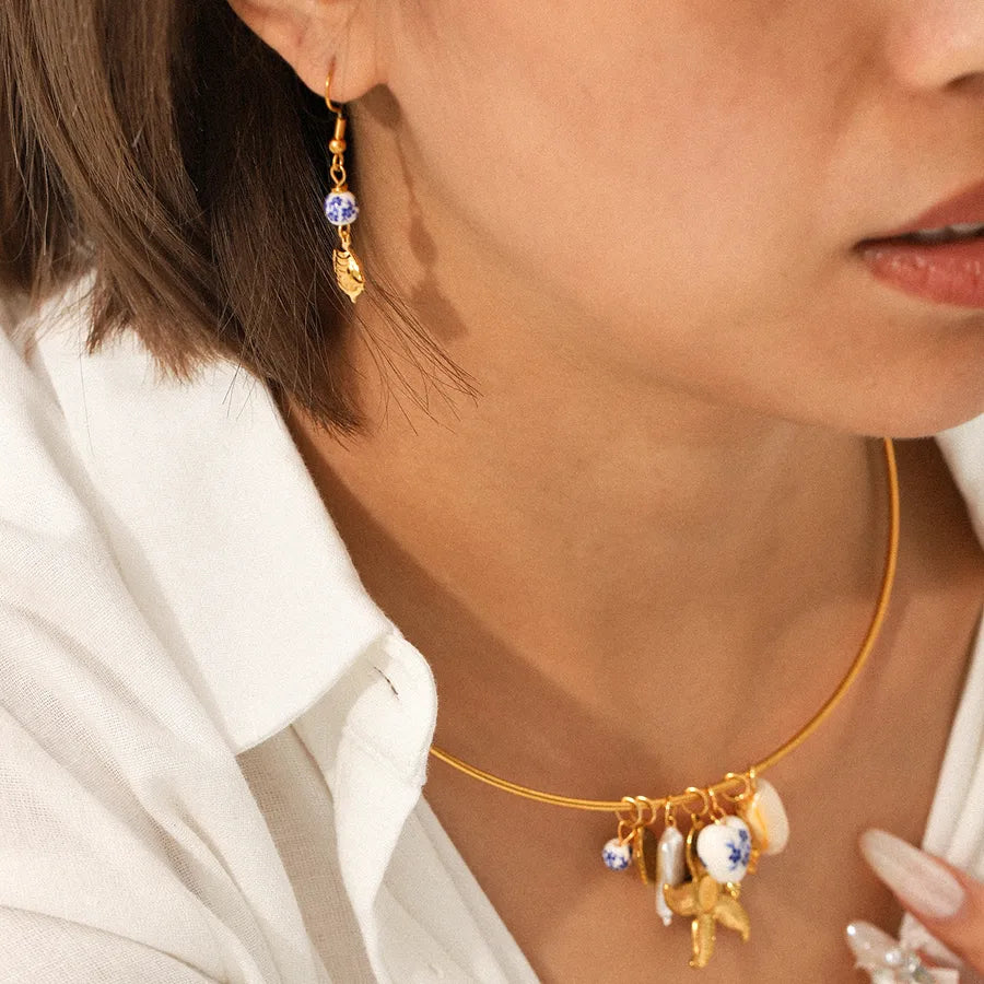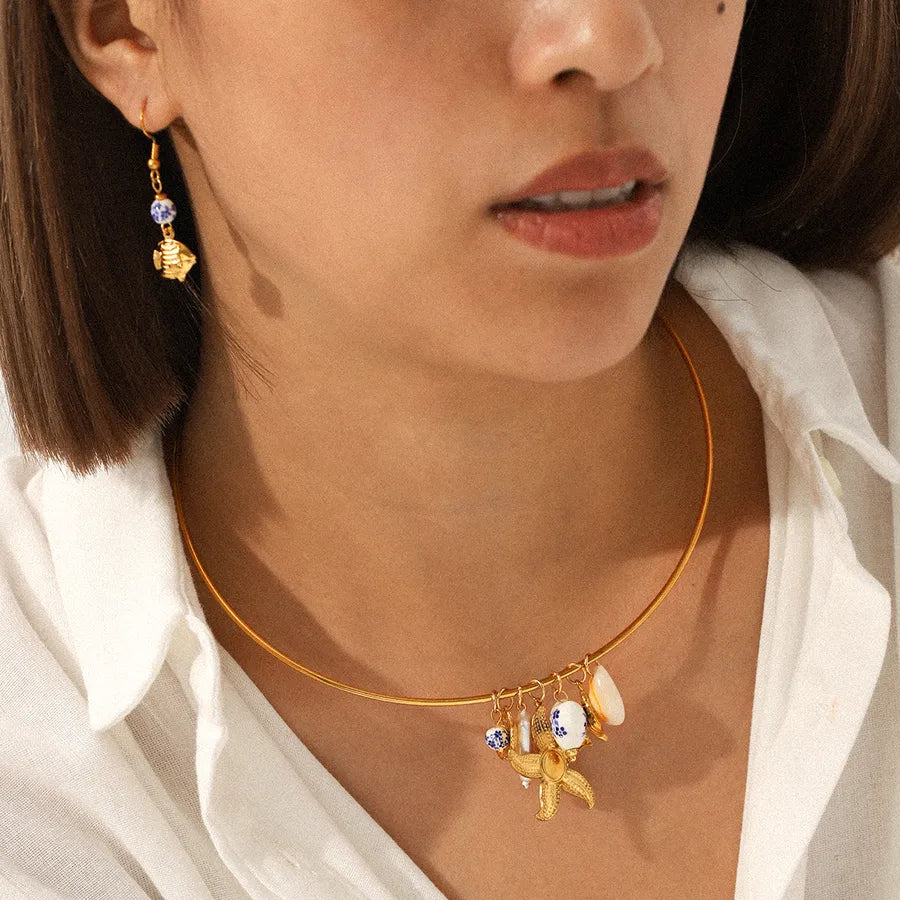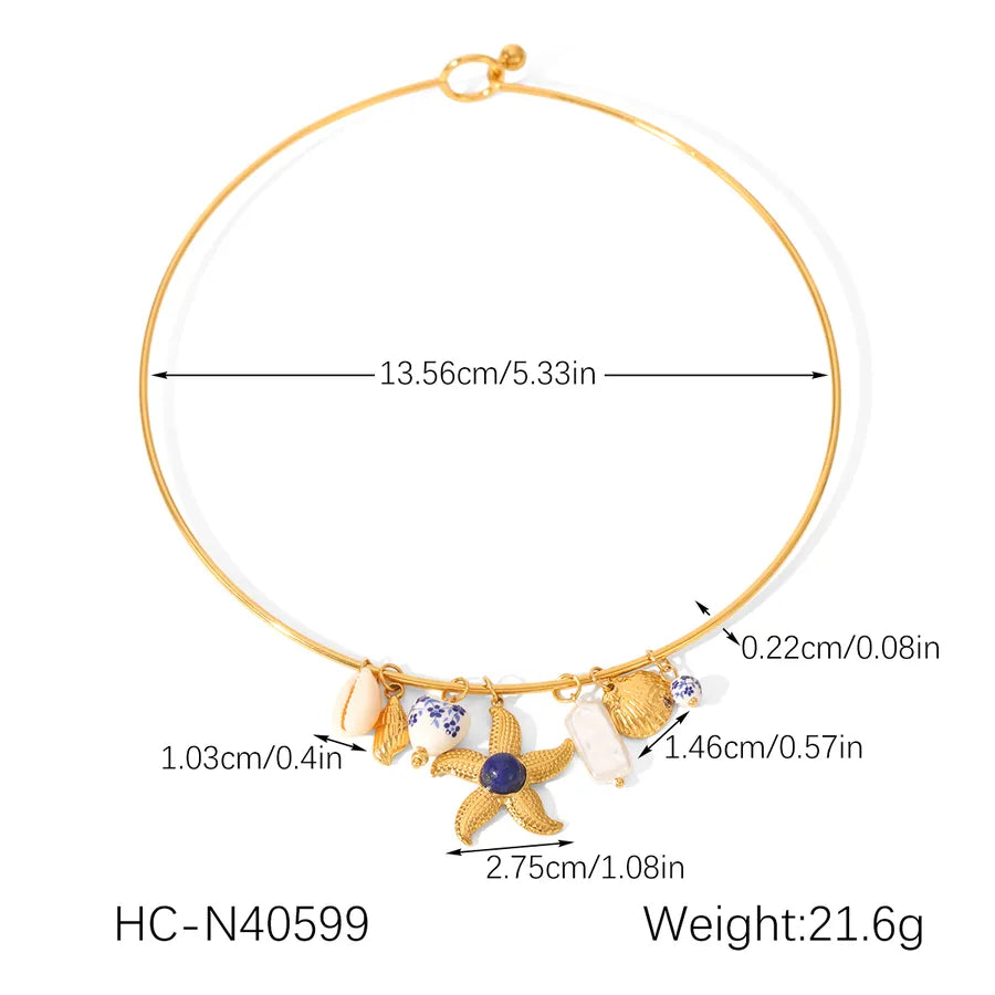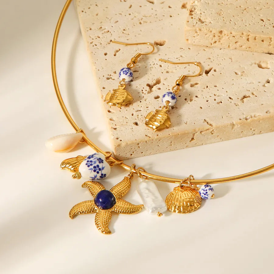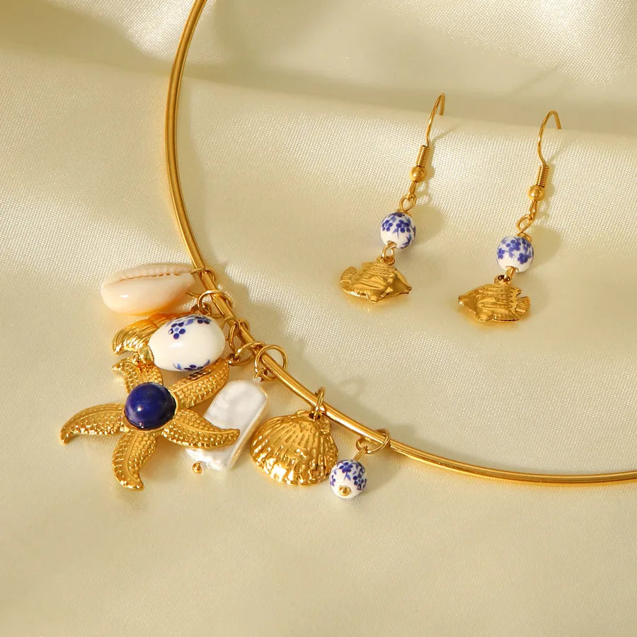 Retro Ins Style Stainless Steel Ceramic Heart Starfish Shell Necklace Titanium Steel Women's Jewelry Daily Wear Gold Plated