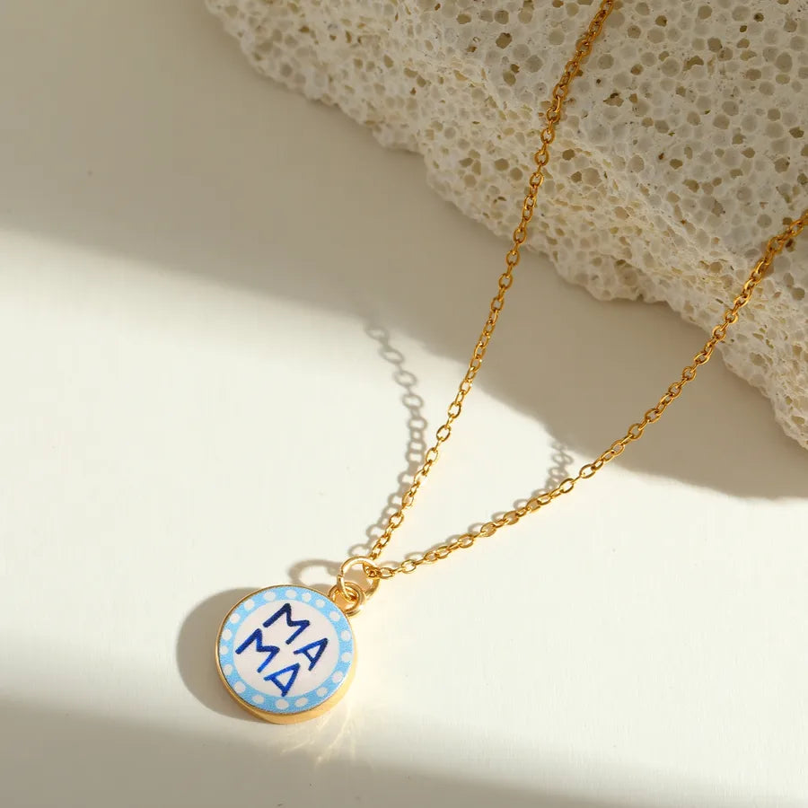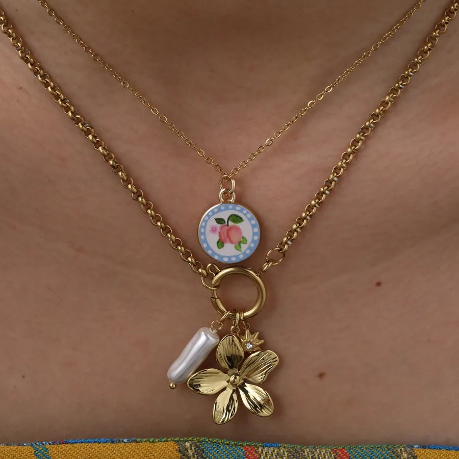 Rose Pattern Pendant Necklace Gold Plated Stainless Steel Round Tag Design Casual Romantic Commute Style For Women Lobster Clasp