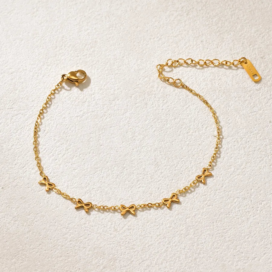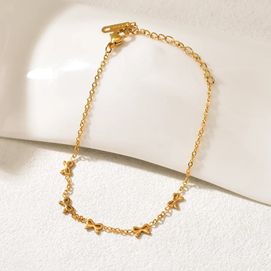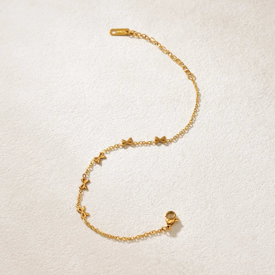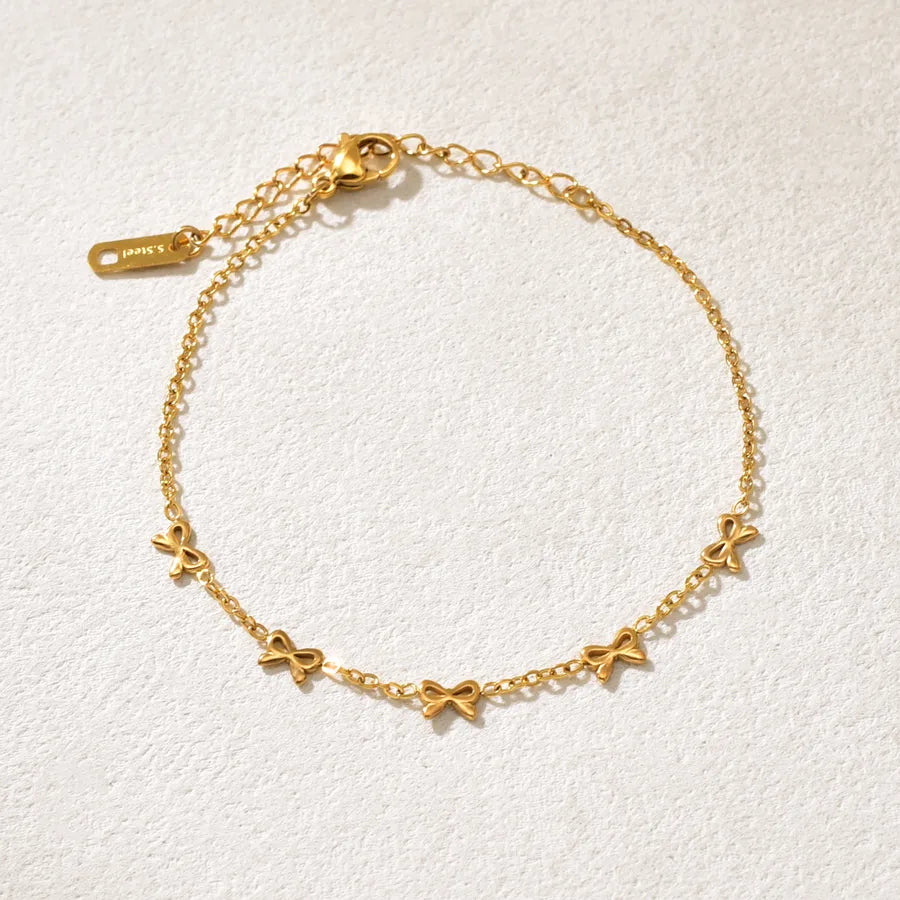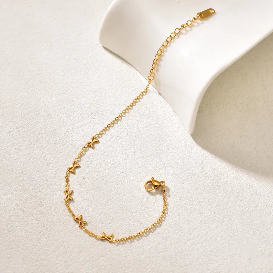 S28 Stainless Steel Cross Bracelet For Women 18K Gold Butterfly Knot Elegant Simple Style Daily Wear Lobster Clasp Jewelry Accessory