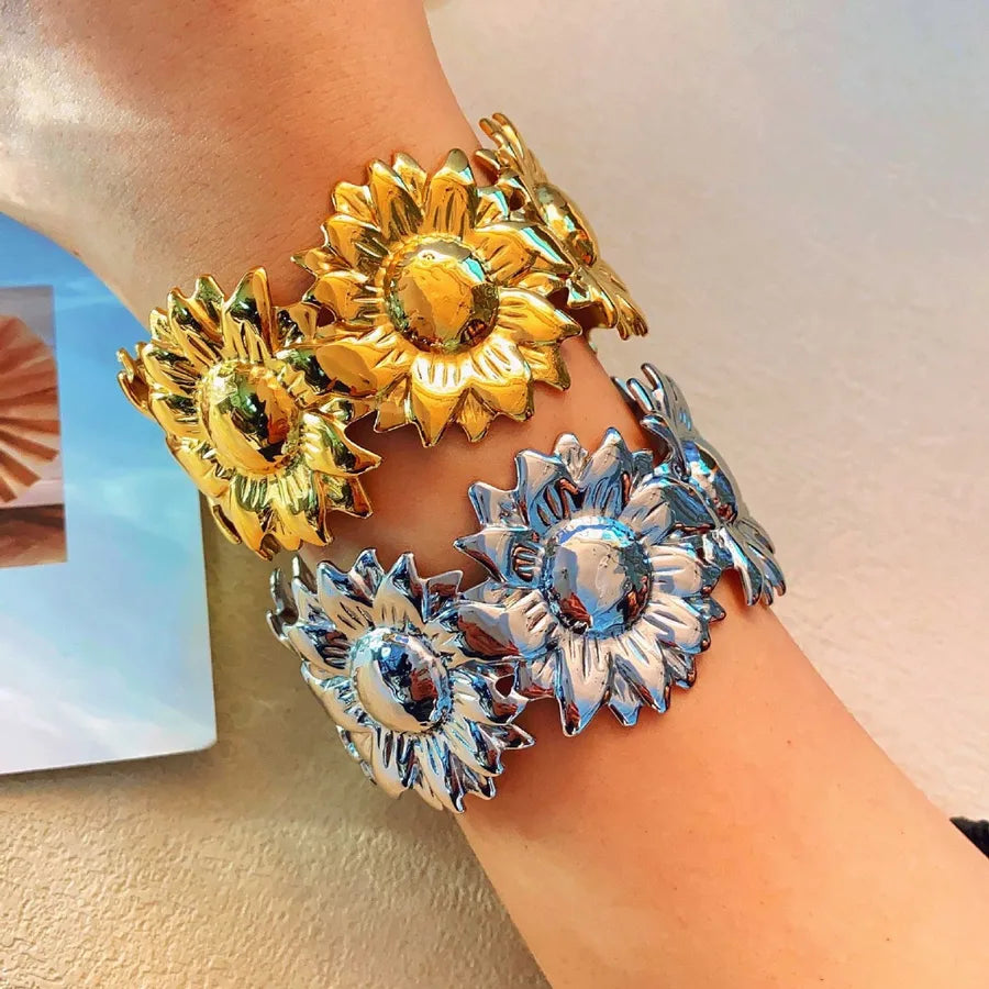 Simple Style Flower Titanium Steel Bangle In Bulk