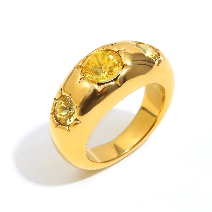 Stainless Steel 18K Gold Plated Three Zircon Stones Ring Simple Geometry Fashionable All-Match Style For Travel Universal Season