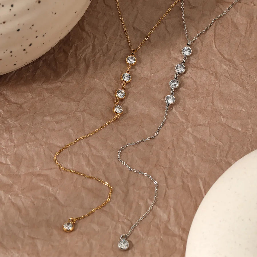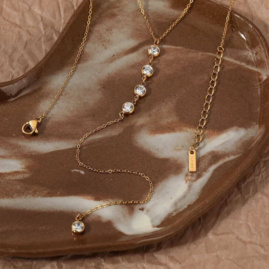Stainless Steel Long Y-Shaped Pendant Necklace Women Simple Elegant Luxury High-End Feelings Electroplated Non-Fading Jewelry