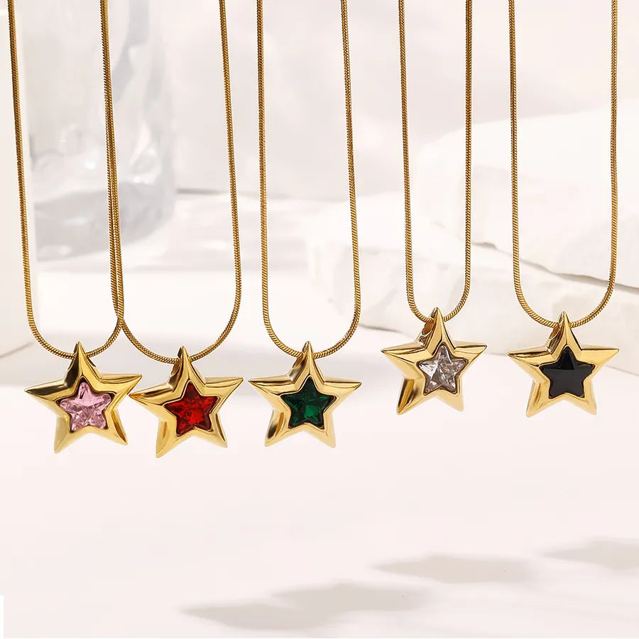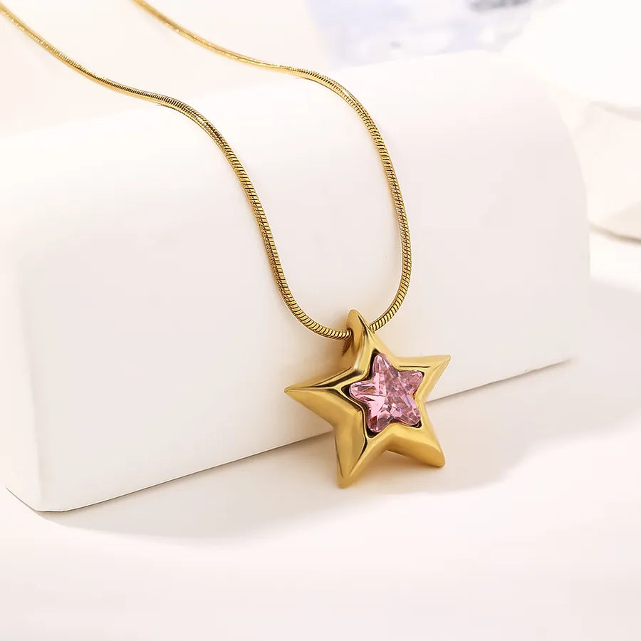 Stainless Steel Star Pendant Necklace Women's Luxury Plated 18K Gold High-End Clavicle Chain Nordic Hip Hop Sweet Ocean Style