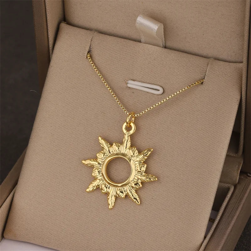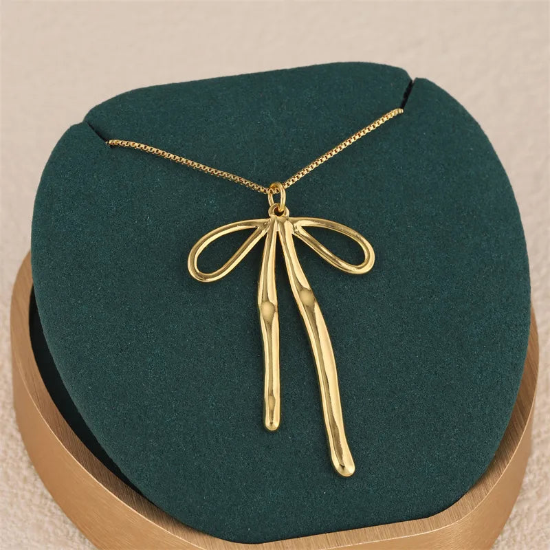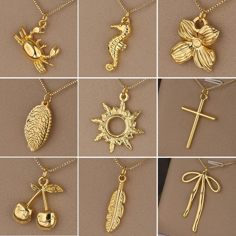 Titanium Steel Butterfly Knot Pendant Necklace Women Stainless Steel Simple Cherry Leaf Sun Clavicle Chain Jewelry Accessory