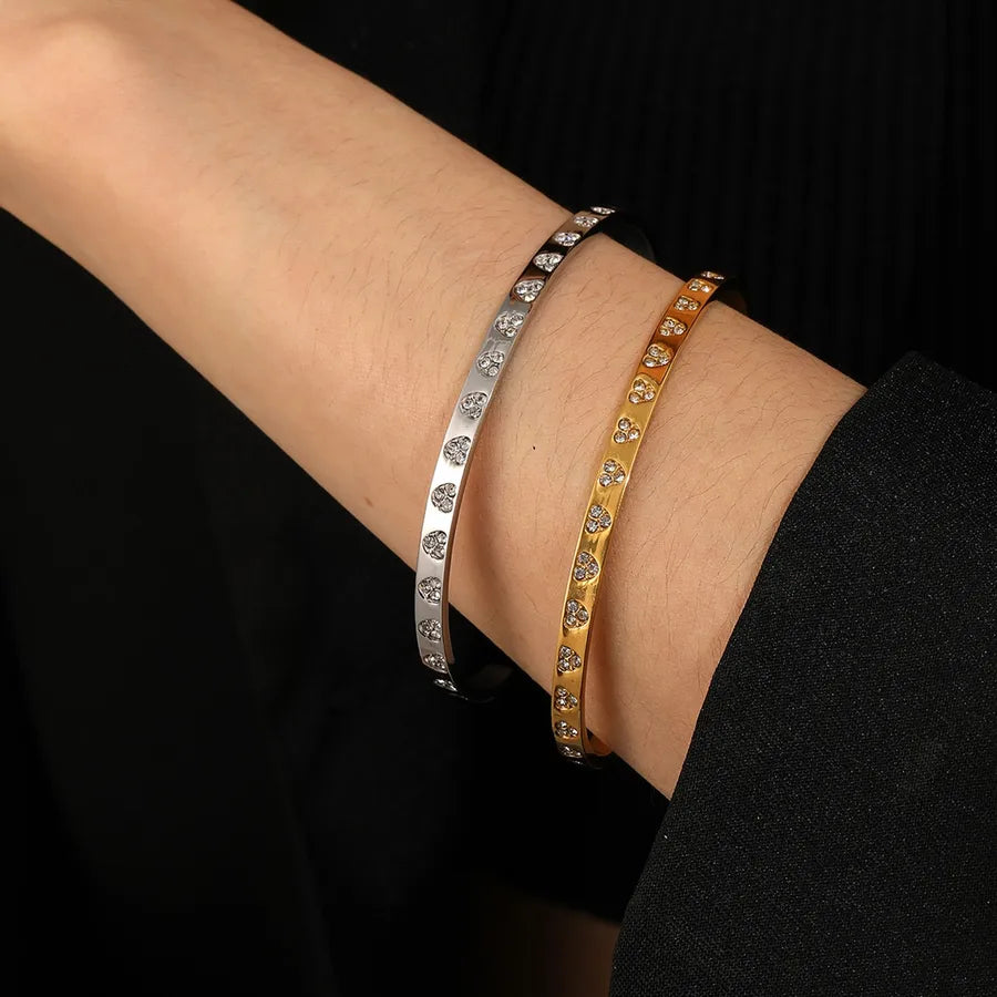 Titanium Steel Ins Fashion Personality Match Open Hand Bracelet Stainless Steel Vacuum Plated 18K Gold Embedded Heart Zirconia Ladies Hand Jewelry