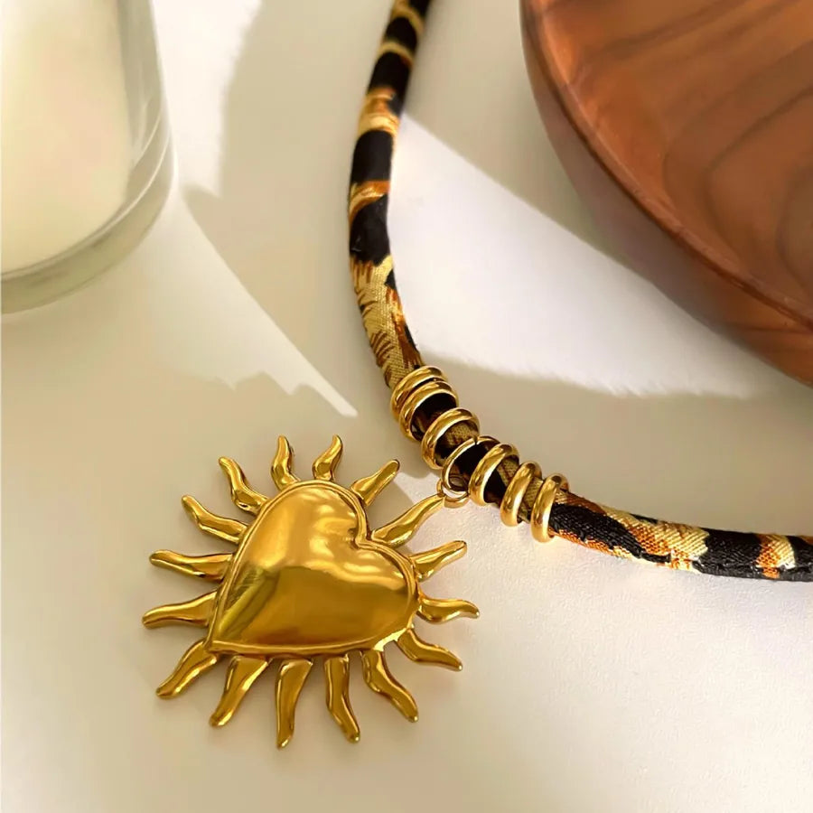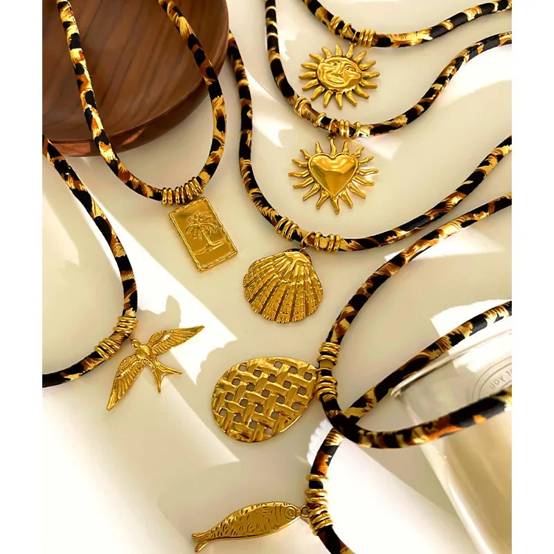 Vacation Classic Style Heart Shape 18K Gold Plated 304 Stainless Steel Cord String Pendant Necklaces Wholesale