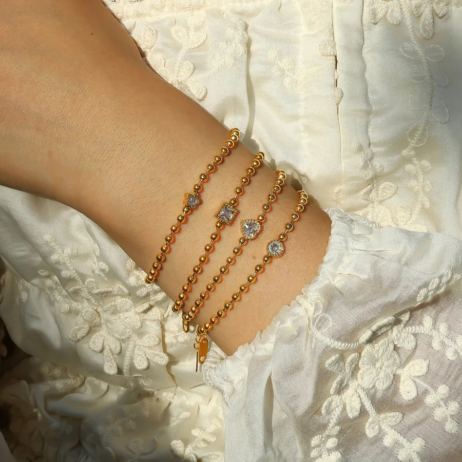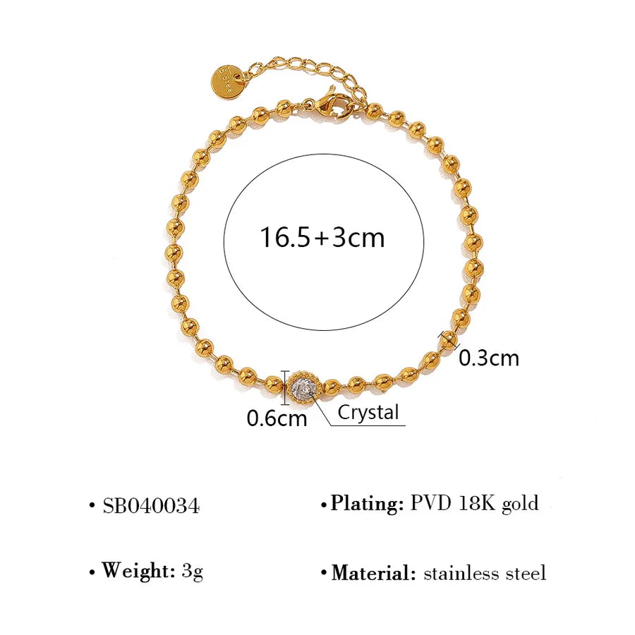 Vacation Solid Color 304 Stainless Steel 18K Gold Plated Zircon ball chain Bracelets In Bulk