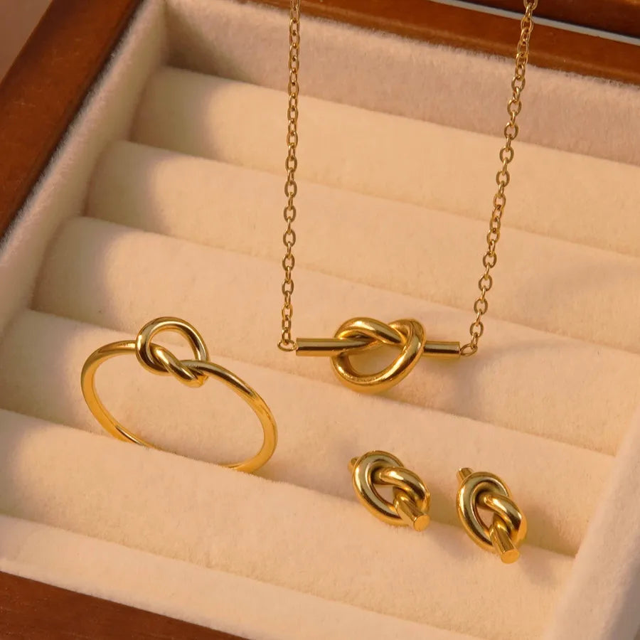 Wholesale Jewelry Basic Simple Style Classic Style Knot 304 Stainless Steel 18K Gold Plated Rings Earrings Necklace
