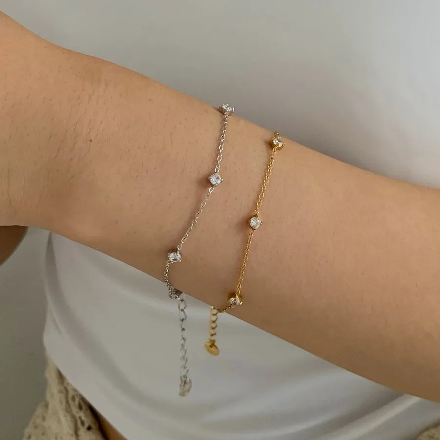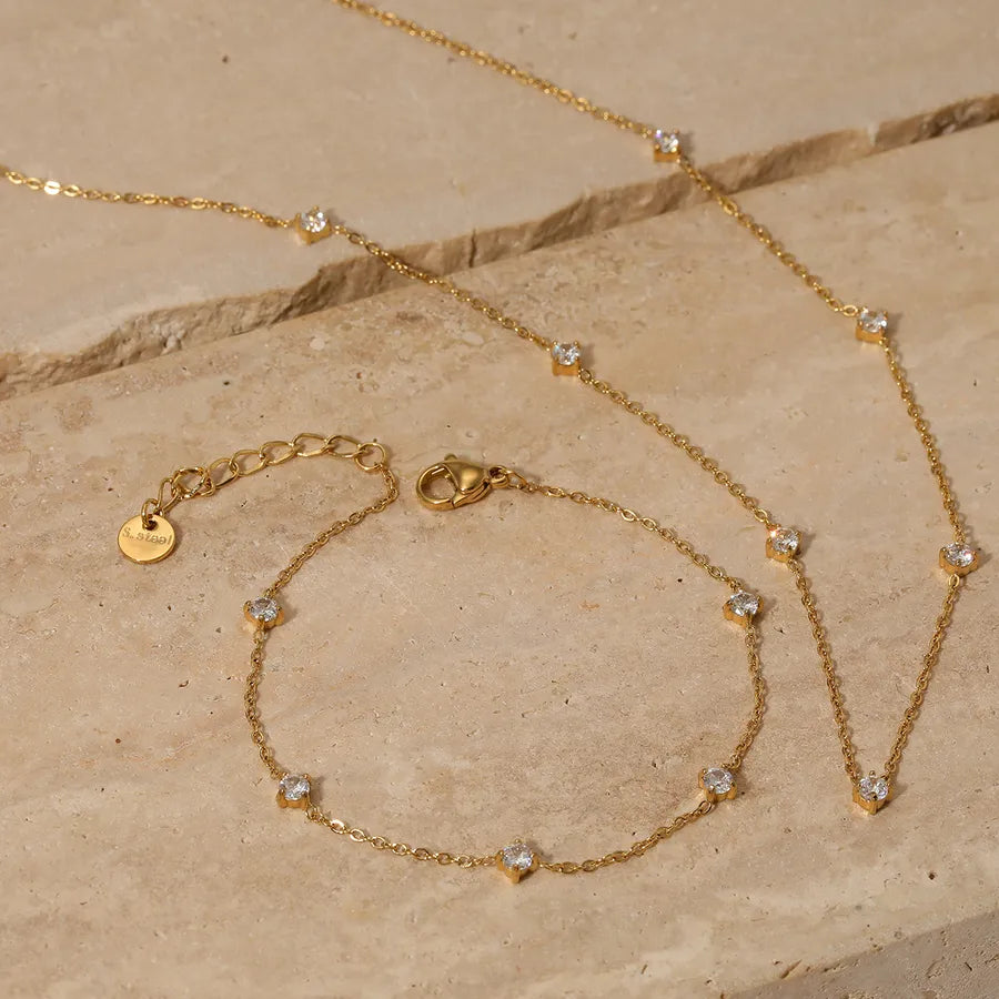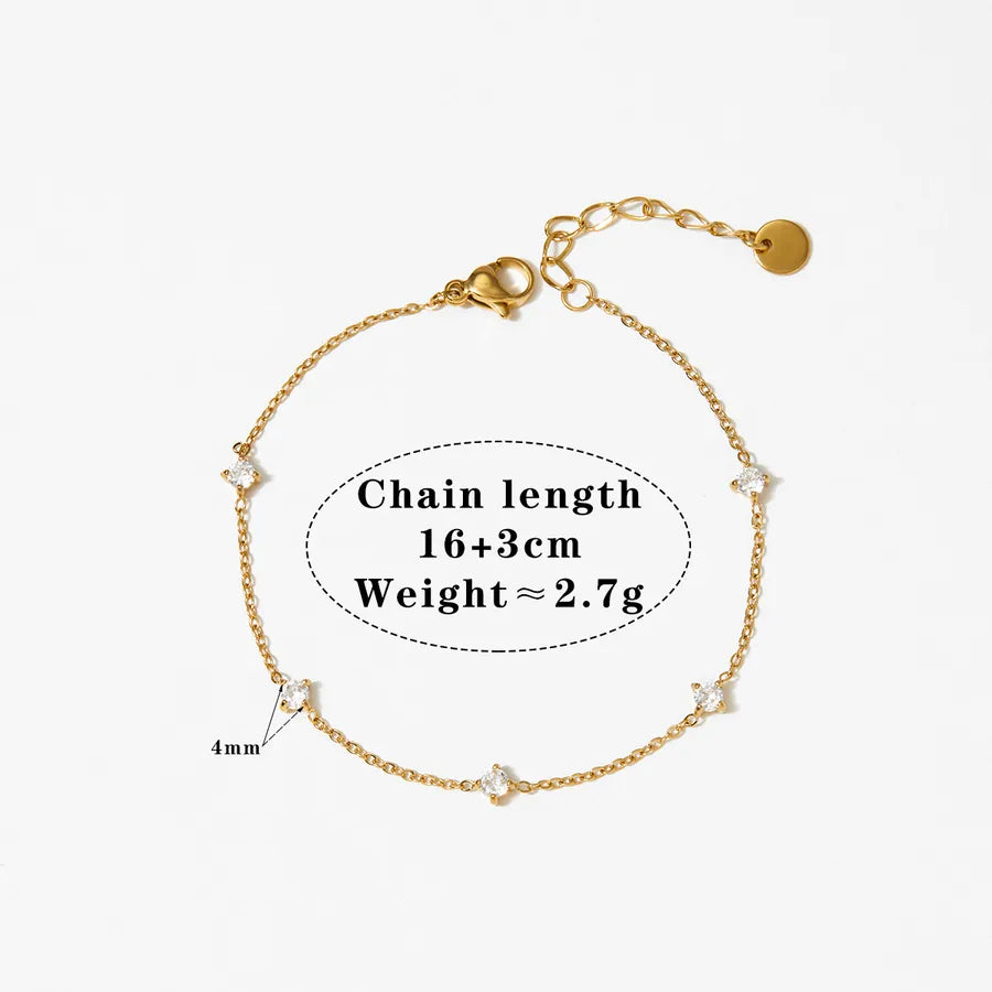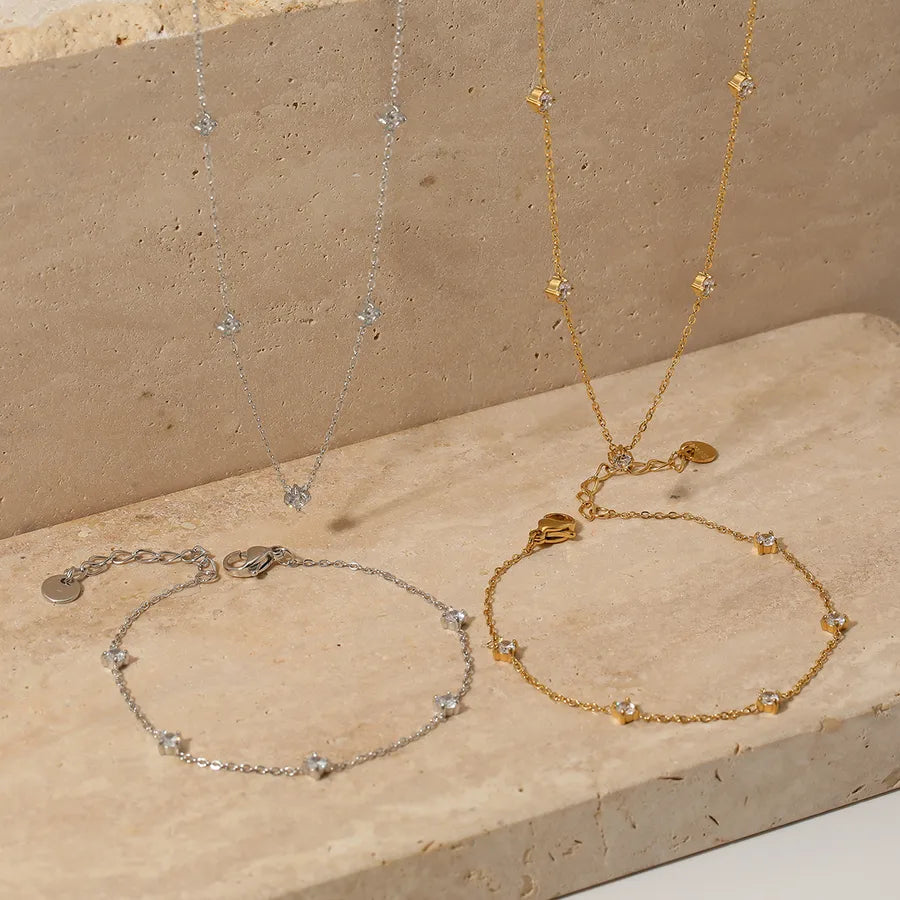 Wholesale Jewelry Casual Geometric 304 Stainless Steel Zircon 16K Gold Plated White Gold Plated Gold Plated Plating Inlay Bracelets Anklet Necklace