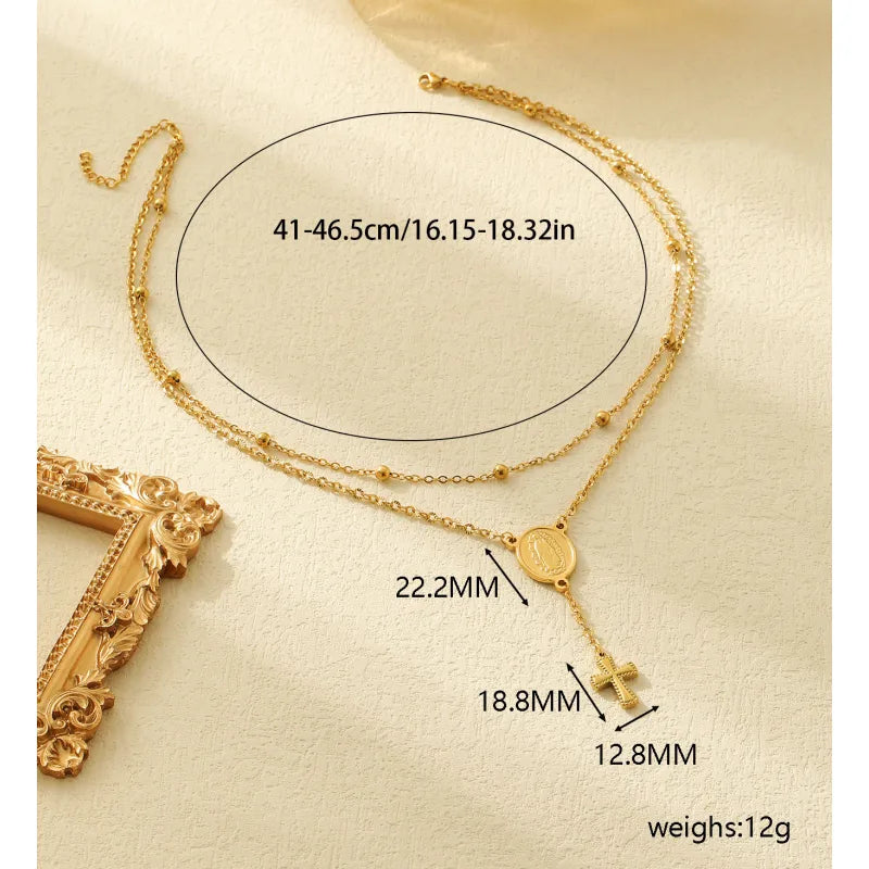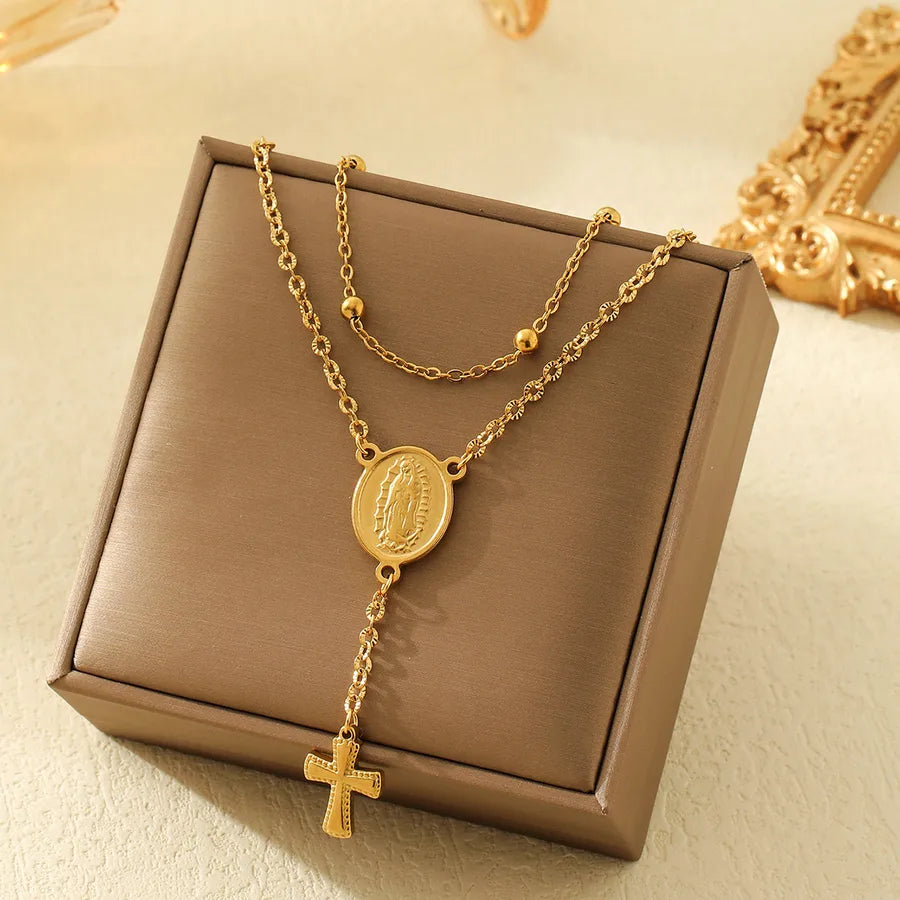Wholesale Jewelry Casual Simple Style Human Cross Virgin Mary 304 Stainless Steel Handmade Double Layer Necklaces