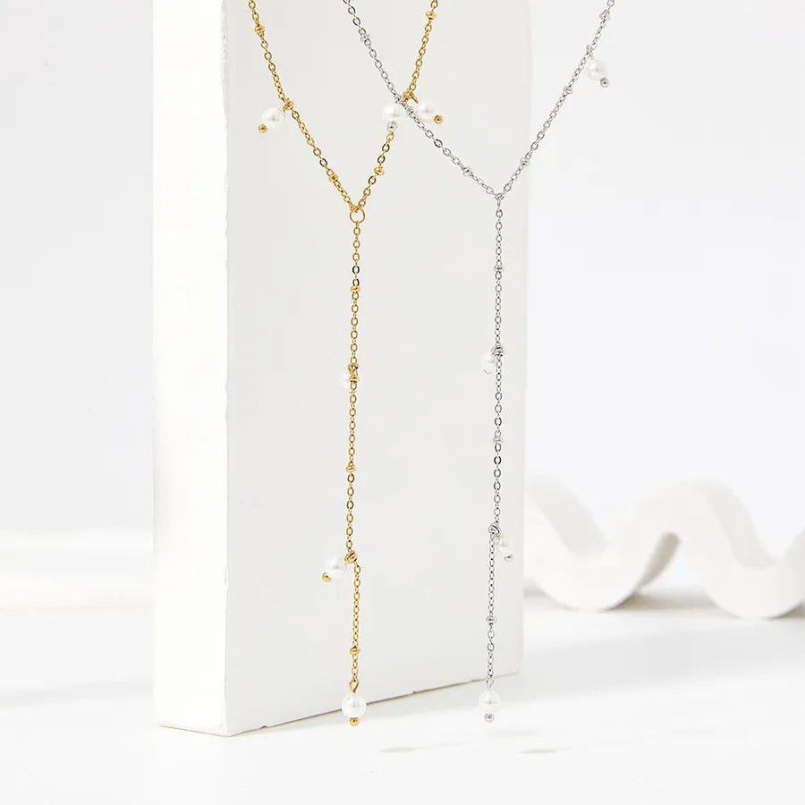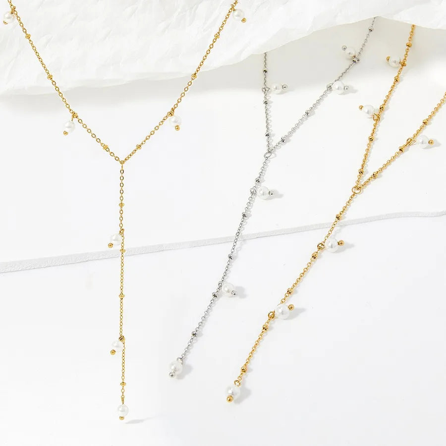 Wholesale Jewelry Casual Simple Style Round 304 Stainless Steel 16K Gold Plated White Gold Plated Gold Plated Pearl Necklace