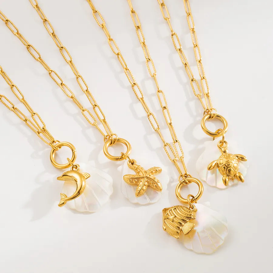 Wholesale Jewelry Casual Vacation Beach Starfish Dolphin Fish 304 Stainless Steel Pendant Necklace