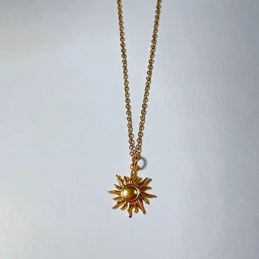 Wholesale Jewelry Classic Style Sun Eye 304 Stainless Steel Titanium Steel 18K Gold Plated Plating Pendant Necklace cable chain