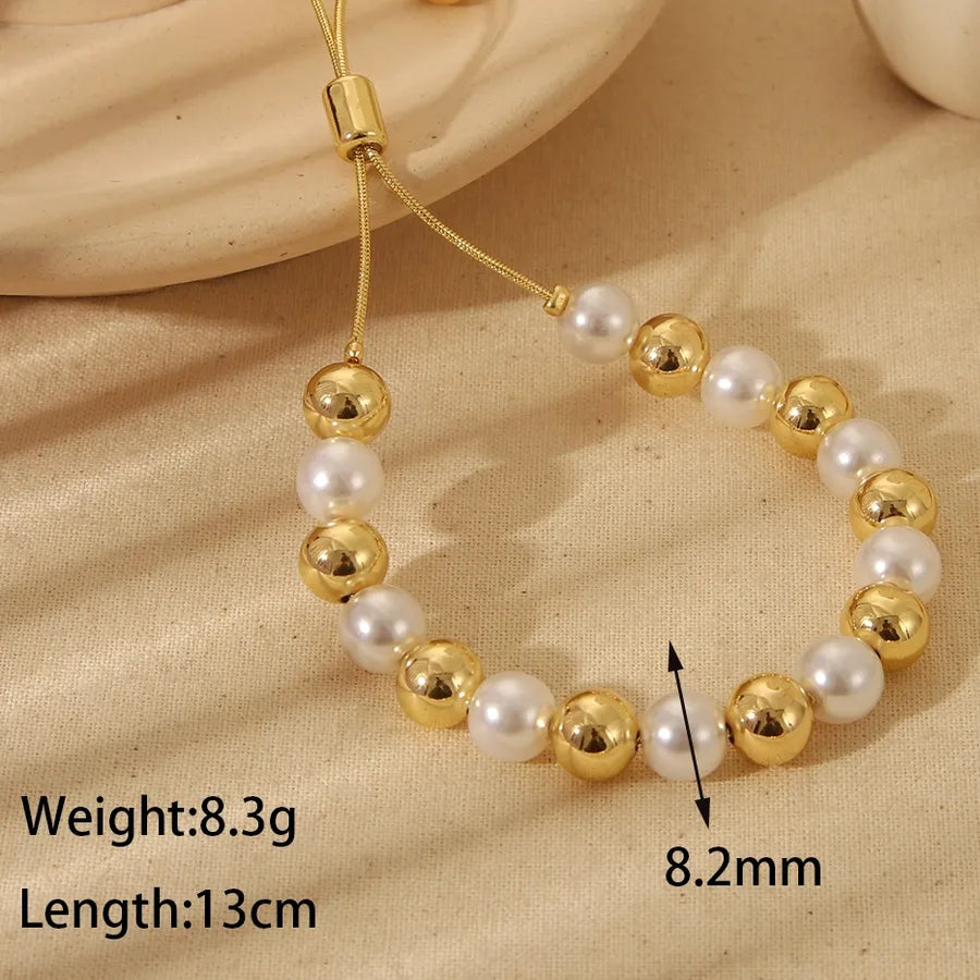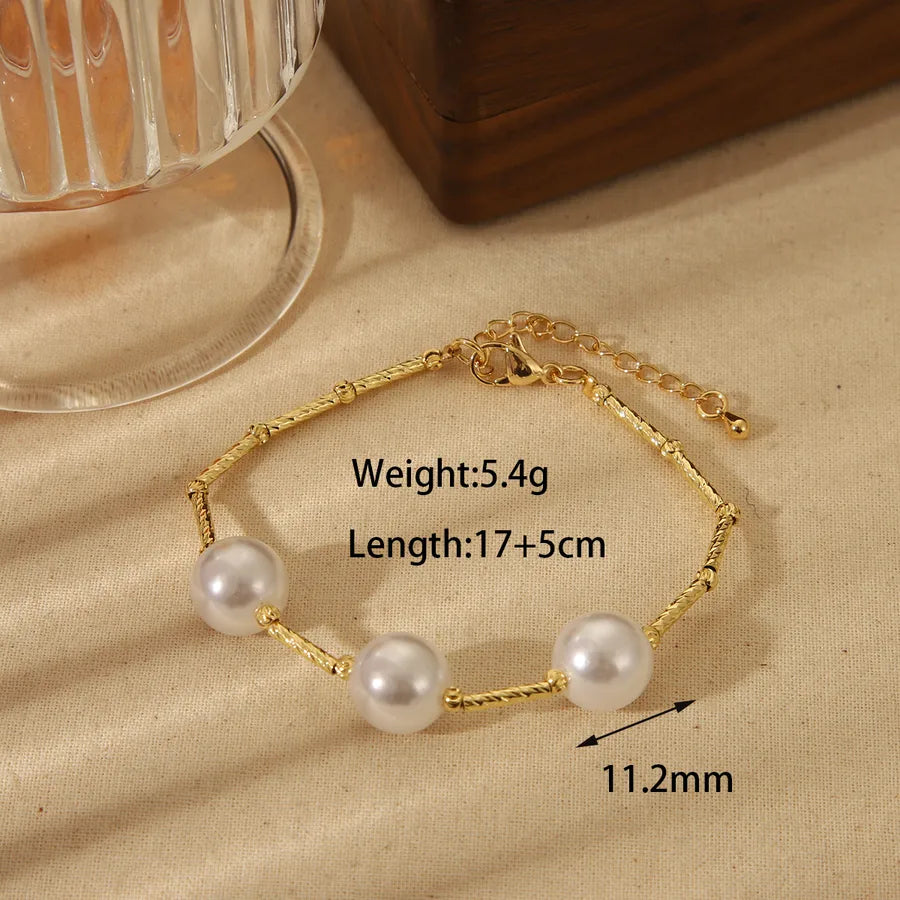Wholesale Jewelry Elegant Heart Shape Copper 18K Gold Plated Beaded Imitation Pearl Plating Bracelets