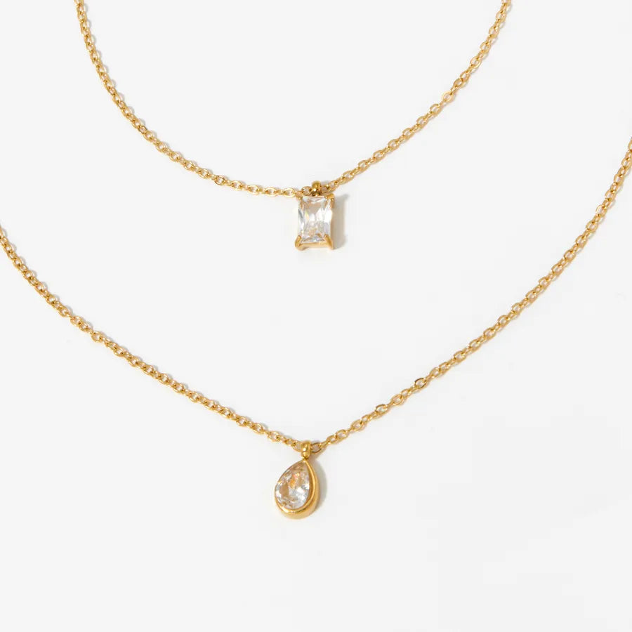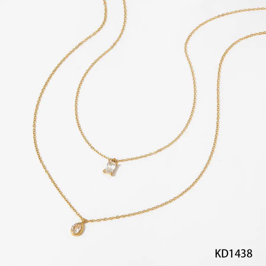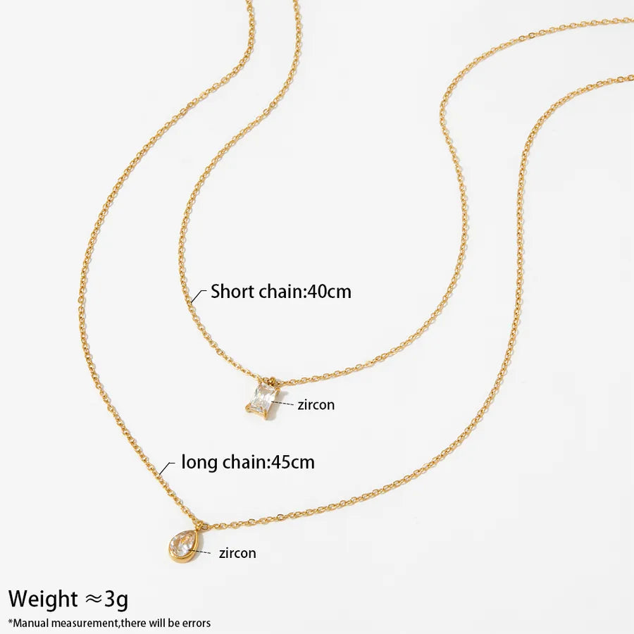 Wholesale Jewelry Luxurious Lady Water Droplets 304 Stainless Steel 16K Gold Plated White Gold Plated cable chain Double Layer Necklaces
