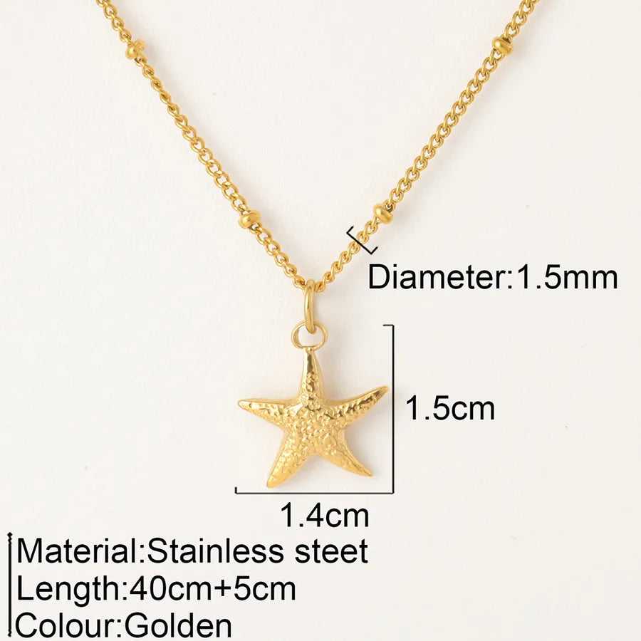 Wholesale Jewelry Marine Style Simple Style Commute Starfish Shell Fish Tail 304 Stainless Steel Pendant Necklace Clip Bead Necklace