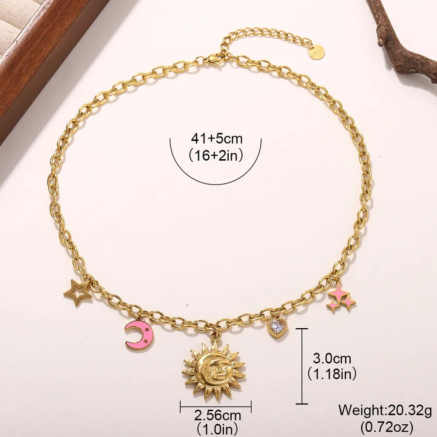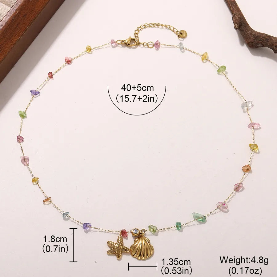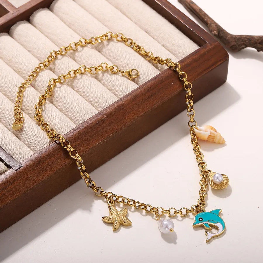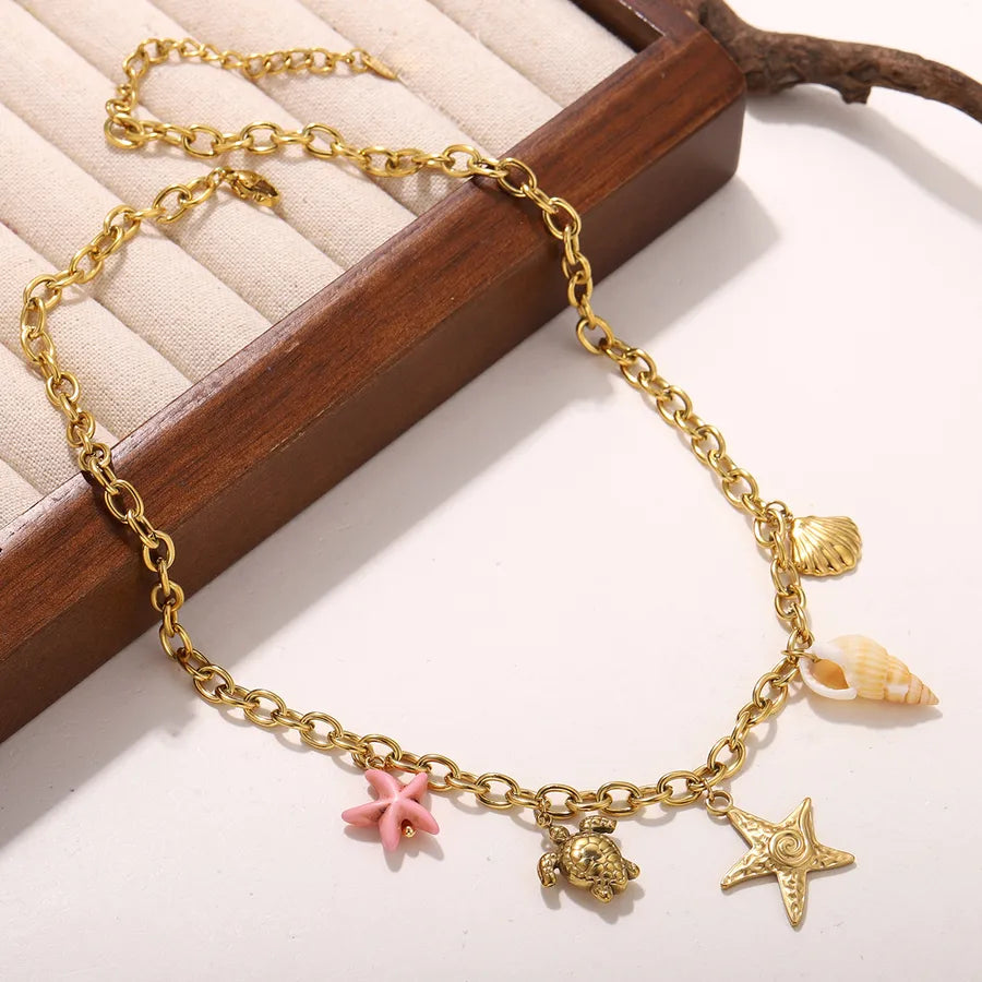 Wholesale Jewelry Marine Style Star Moon Starfish Conch 304 Stainless Steel O-shaped chain Multi Charms Necklace