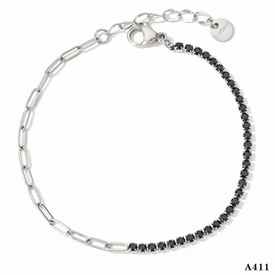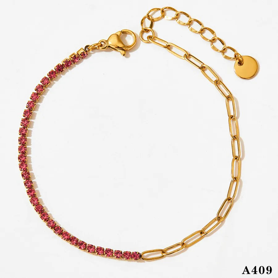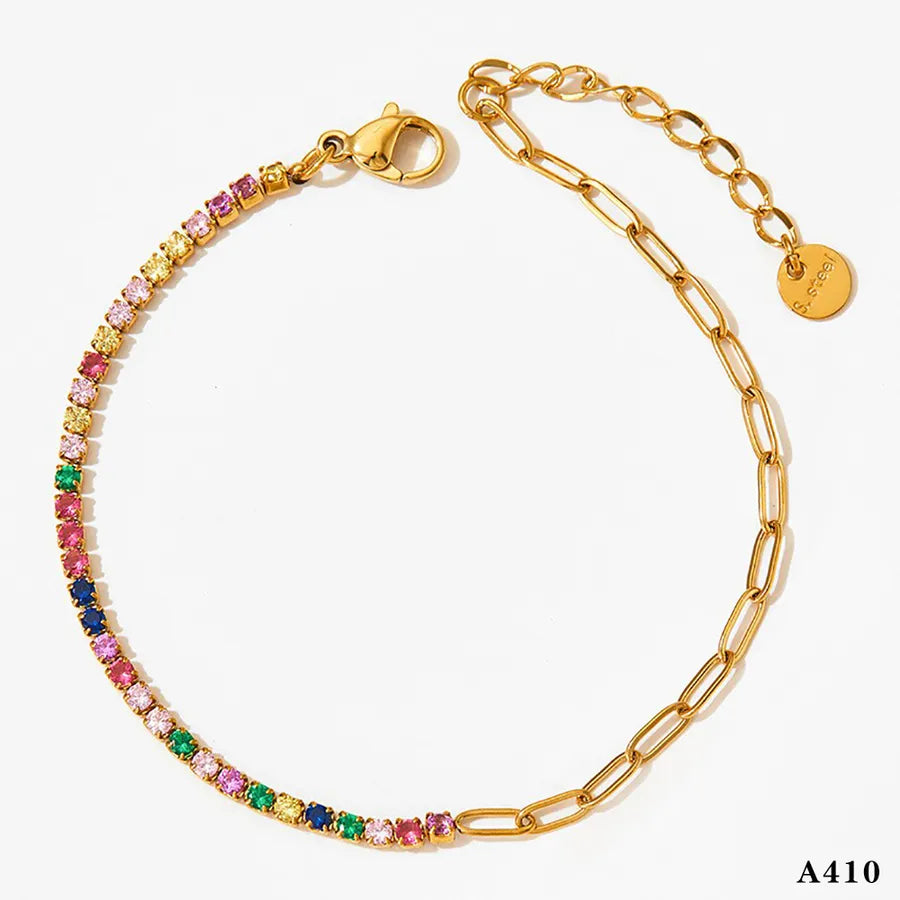 Wholesale Jewelry Modern Style Artistic Geometric 304 Stainless Steel Zircon 16K Gold Plated White Gold Plated Gold Plated Inlay Bracelets Anklet