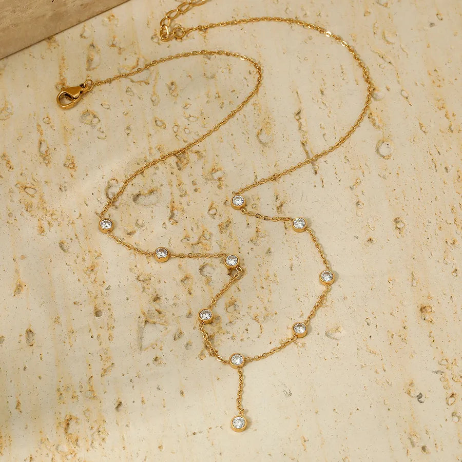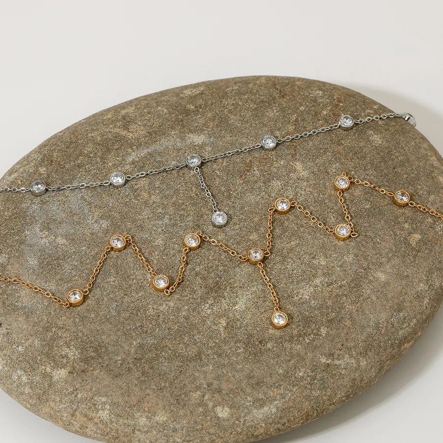 Wholesale Jewelry Modern Style Artistic Geometric 304 Stainless Steel Zircon 16K Gold Plated White Gold Plated Pendant Necklace