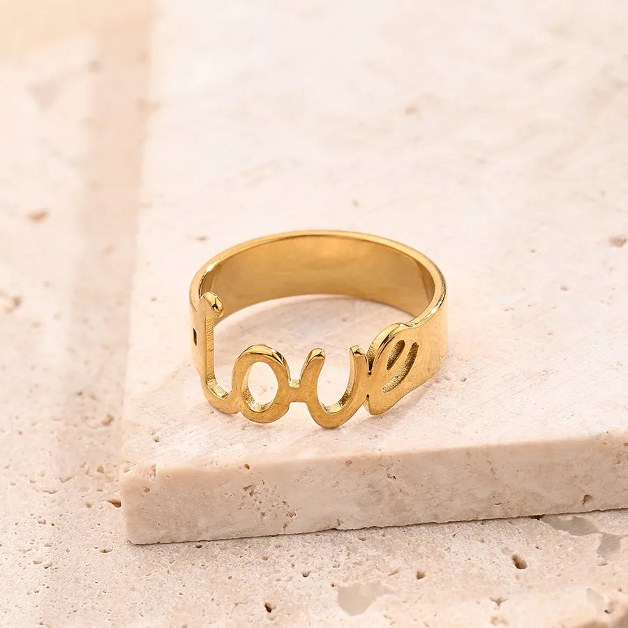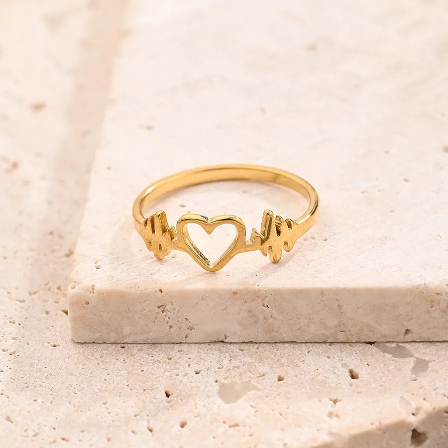 Wholesale Jewelry Modern Style Simple Style Love Red Heart Rectangle 304 Stainless Steel 18K Gold Plated Polishing Plating Rings