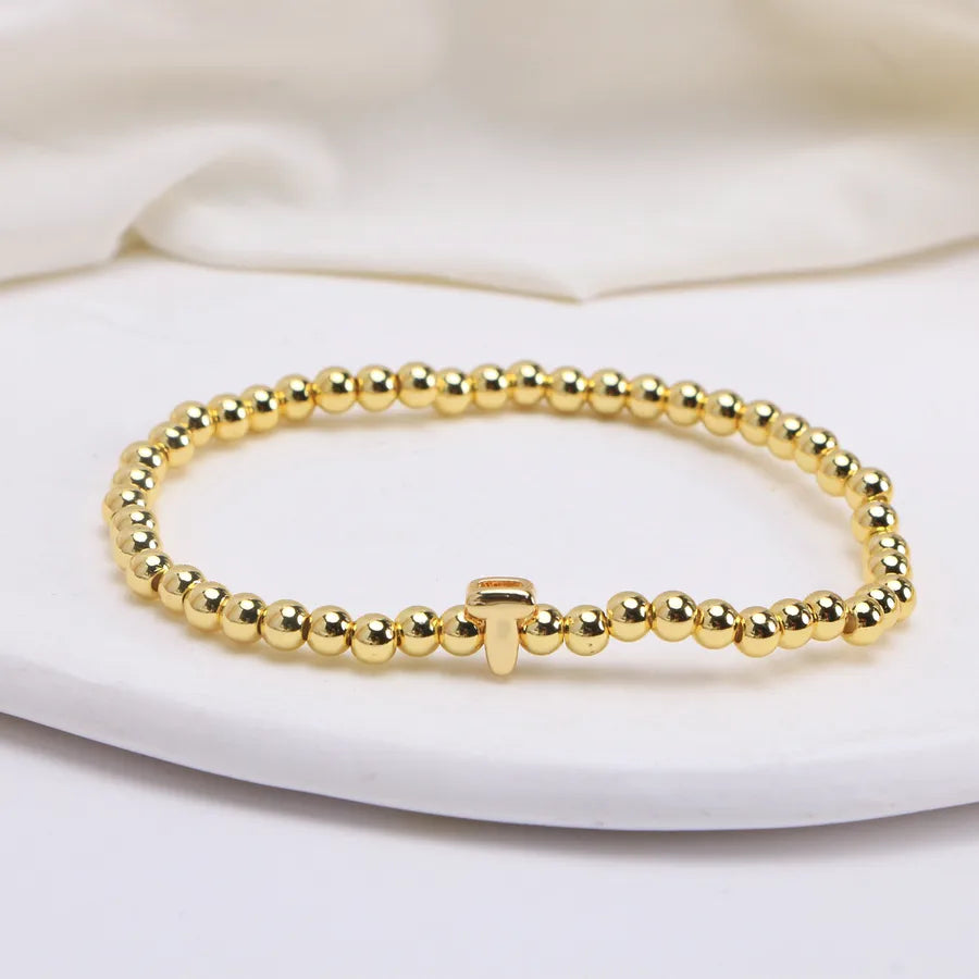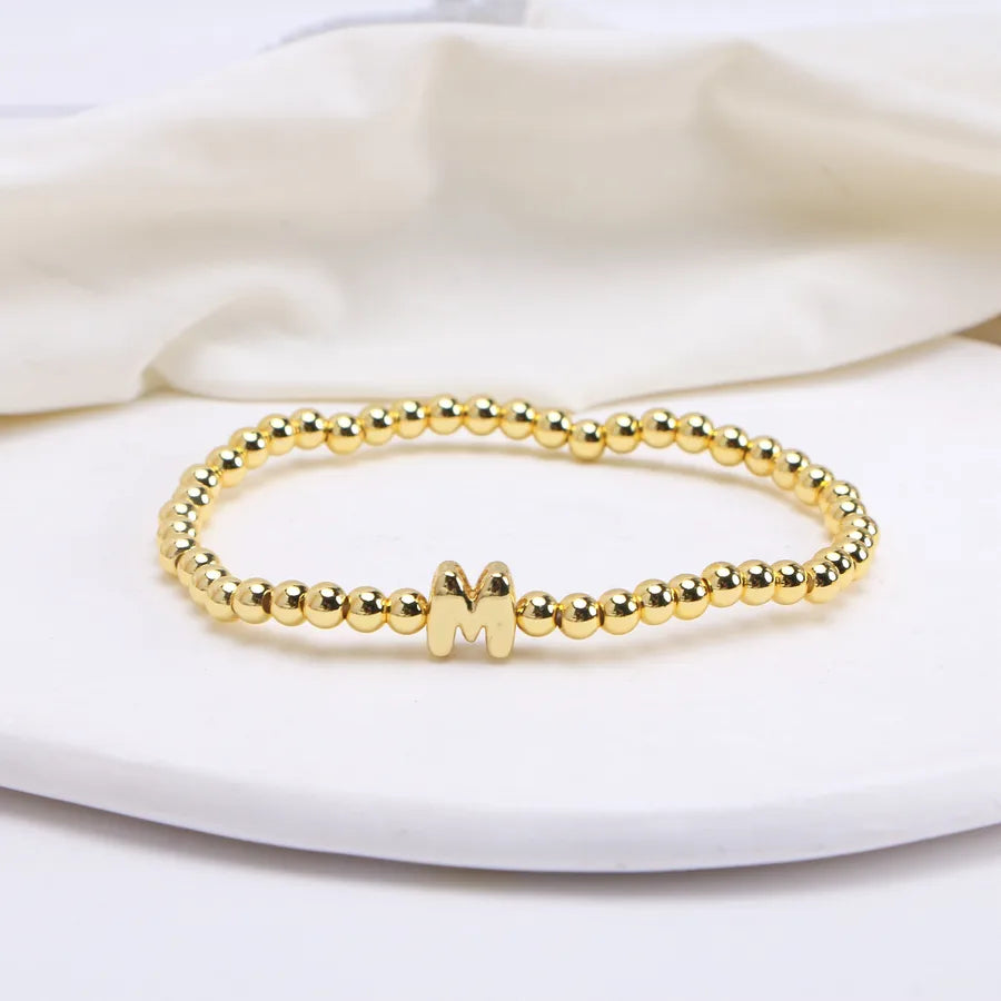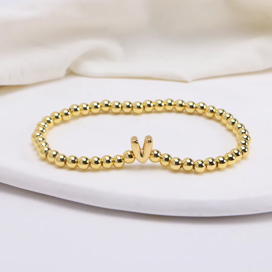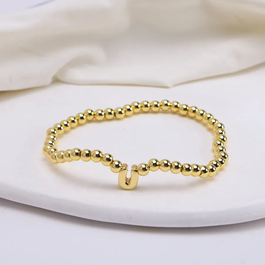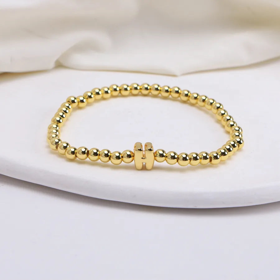 Wholesale Jewelry Simple Style Letter Copper 18K Gold Plated Bracelets ball chain