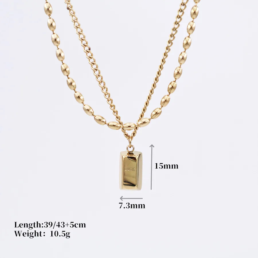 Wholesale Jewelry Vintage Style Classic Style Geometric Letter 304 Stainless Steel Plating Double Layer Necklaces Pendant Necklace Paperclip Chain cable chain Twisted Rope Chain